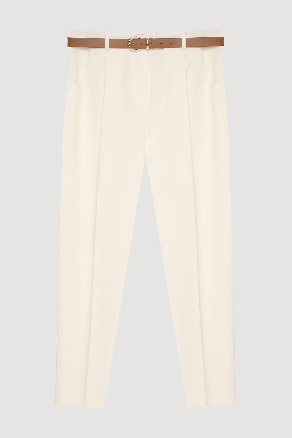 Kemer Aksesuarlı Pensli Pantolon Ekru