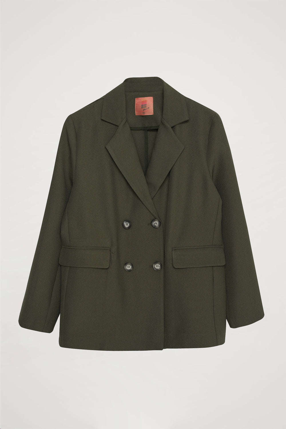 Kruvaze Yaka Çift Düğmeli Blazer Ceket Haki