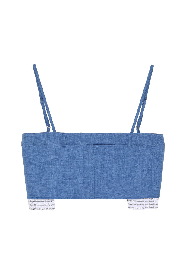 Kumaş Matchli Askılı Crop Bluz İndigo