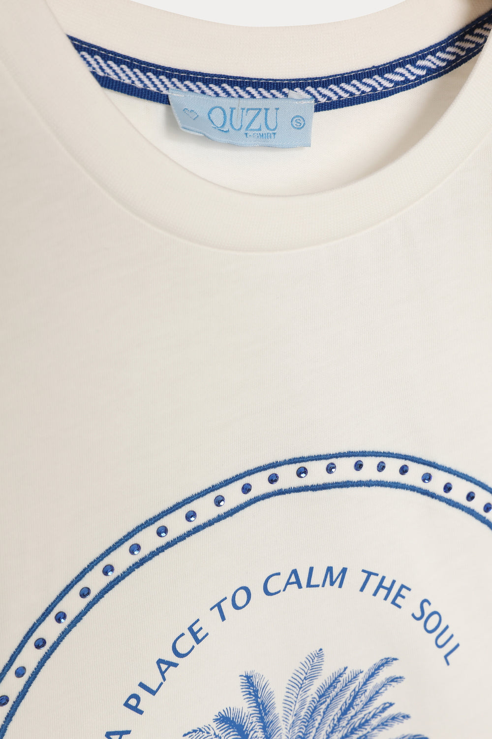 Palmiye Ağaç Desenli Kısa Kol Tişört Ekru