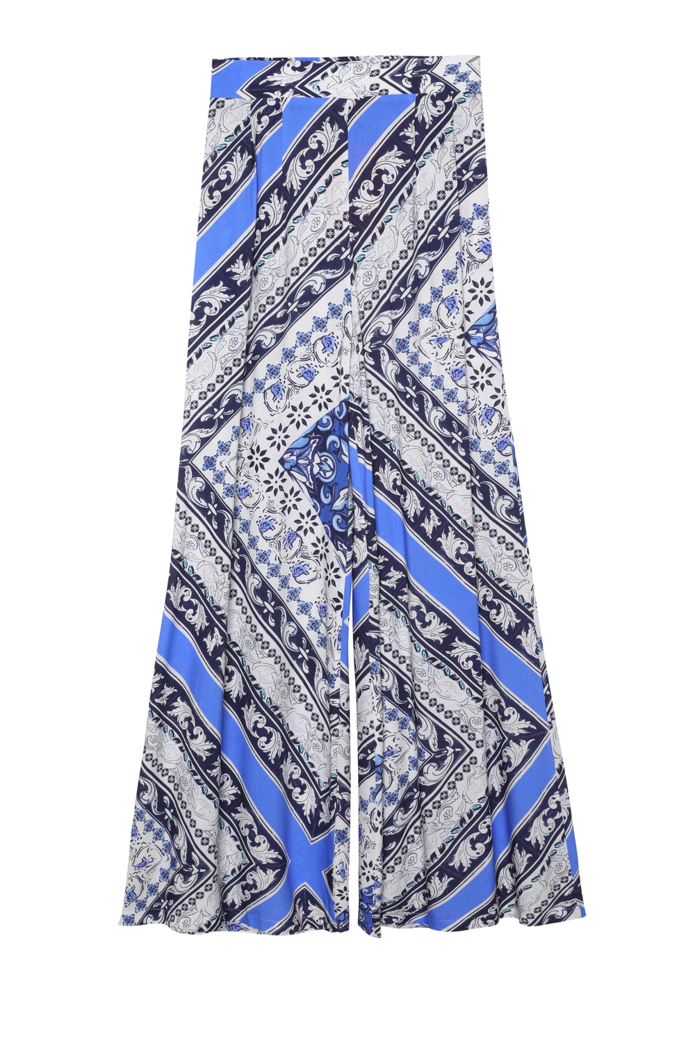 Renkli Desenli Geniş Paça Pantolon Mavi