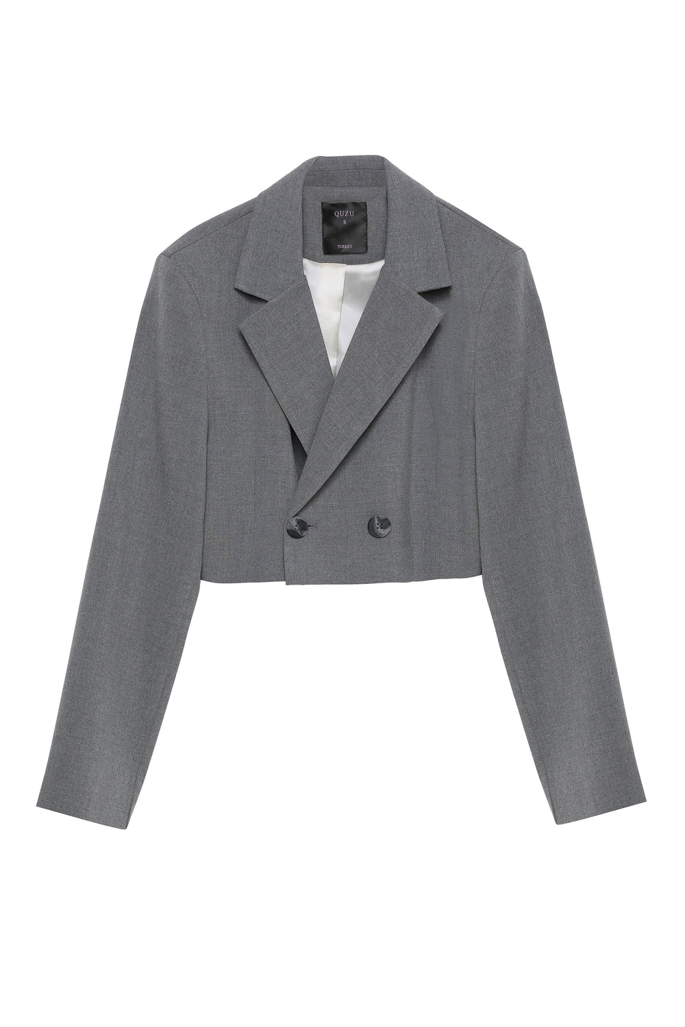 Kruvaze yaka, içi astarlı, uzun kollu, çift düğme detaylı, crop blazer ceket