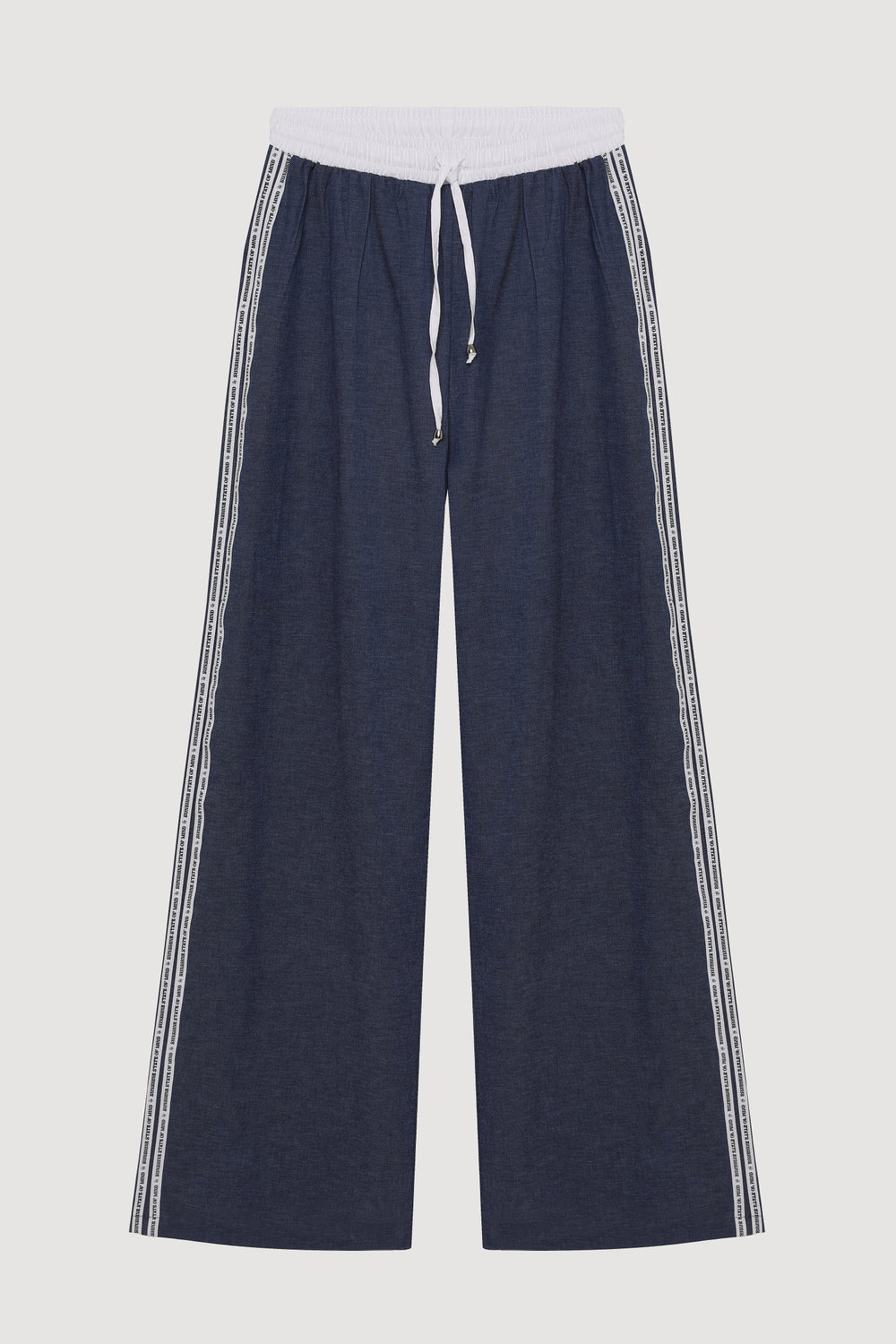 Yanları Şerit Yazılı Kot Görünümlü Pantolon İndigo