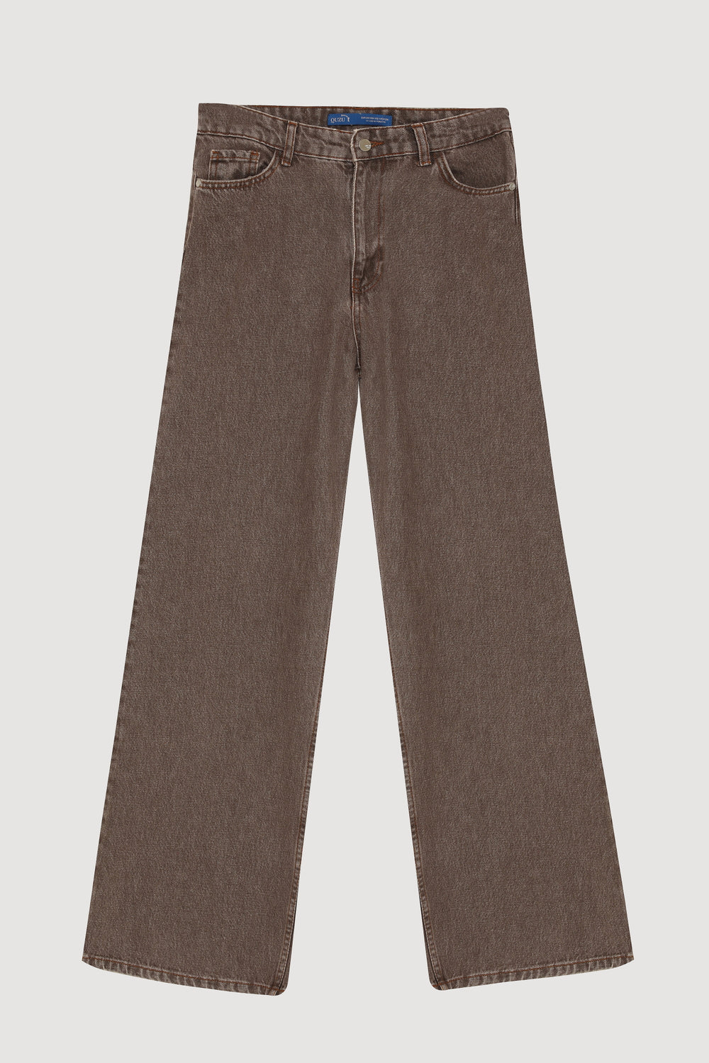 Yıkama Detaylı Bol Kot Pantolon Kahverengi
