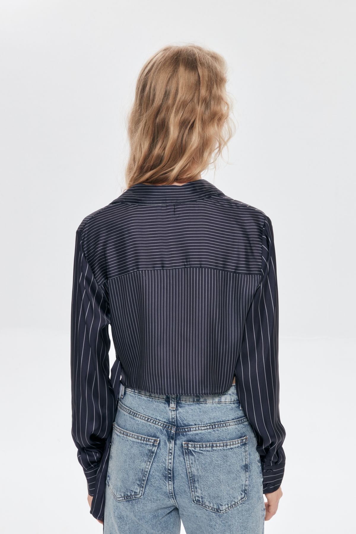 Bağlama Detaylı Saten Crop Gömlek Lacivert