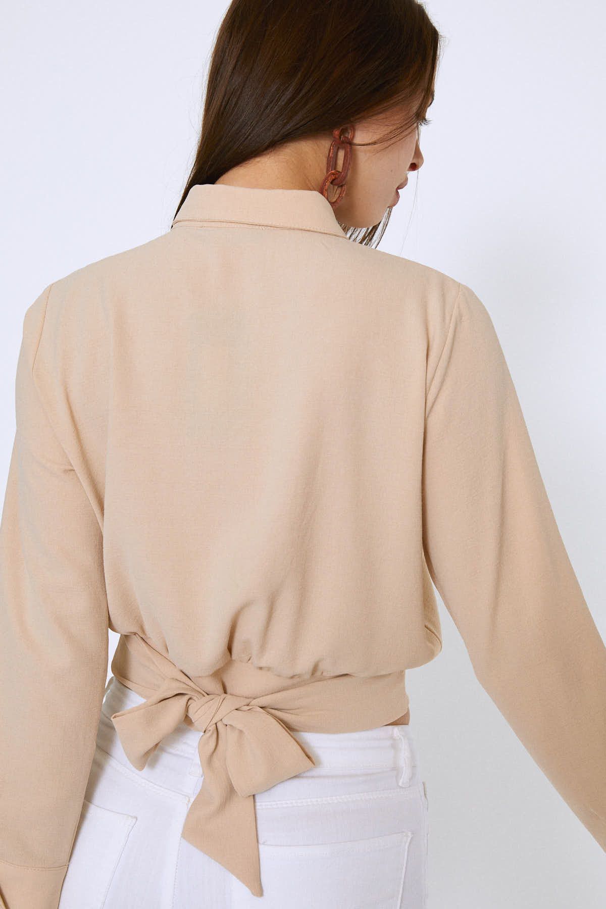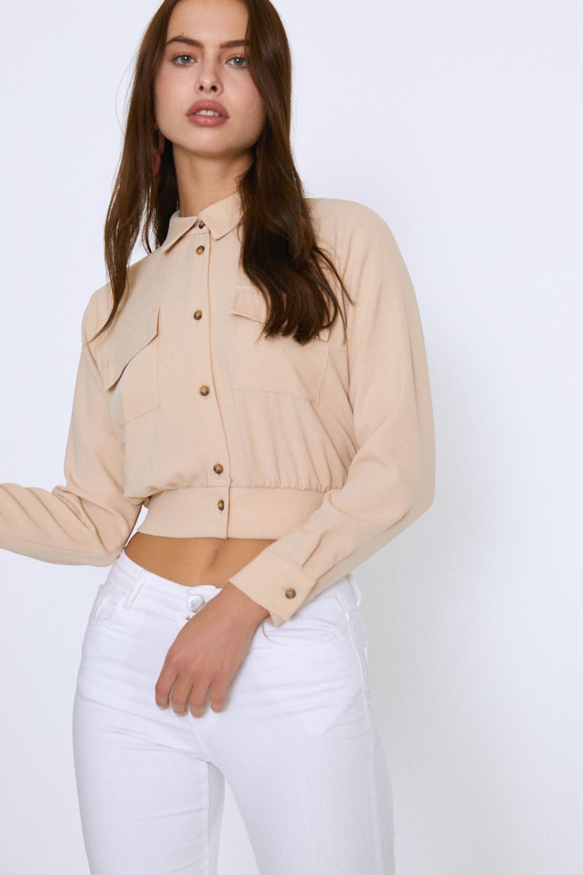 Bel detayını öne çıkarmak için kuşakla desteklenen cepli gömlek, ölçülü bir şıklık sunuyor. Gömleğini yüksek bel pantolonlarla kombinleyebilir, günlük stilinin bir parçası haline getirebilirsin.