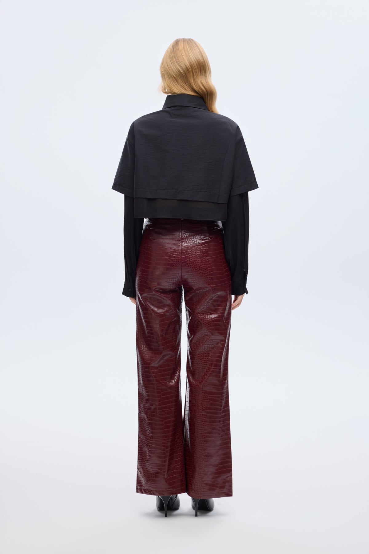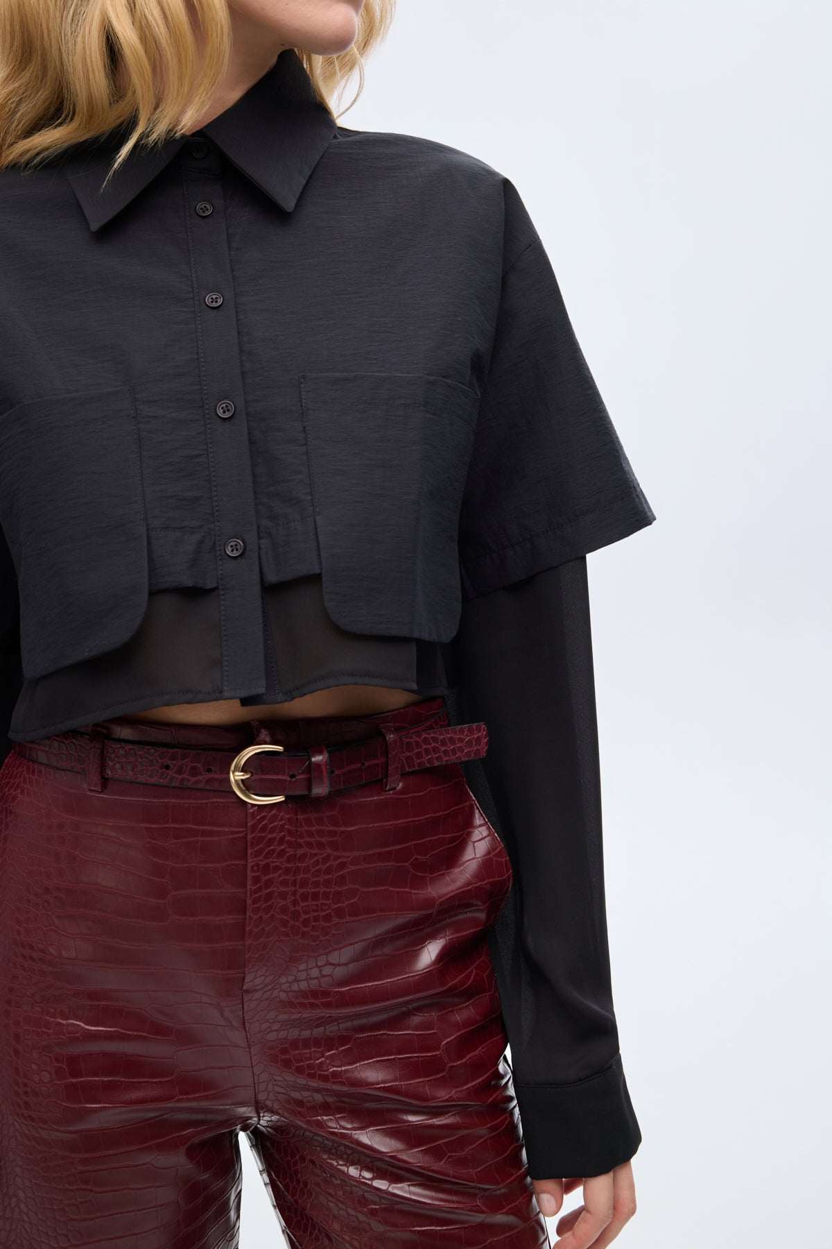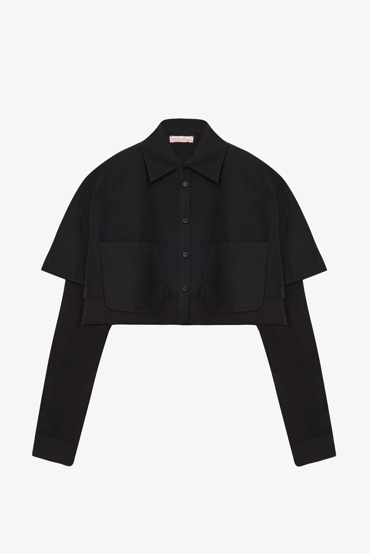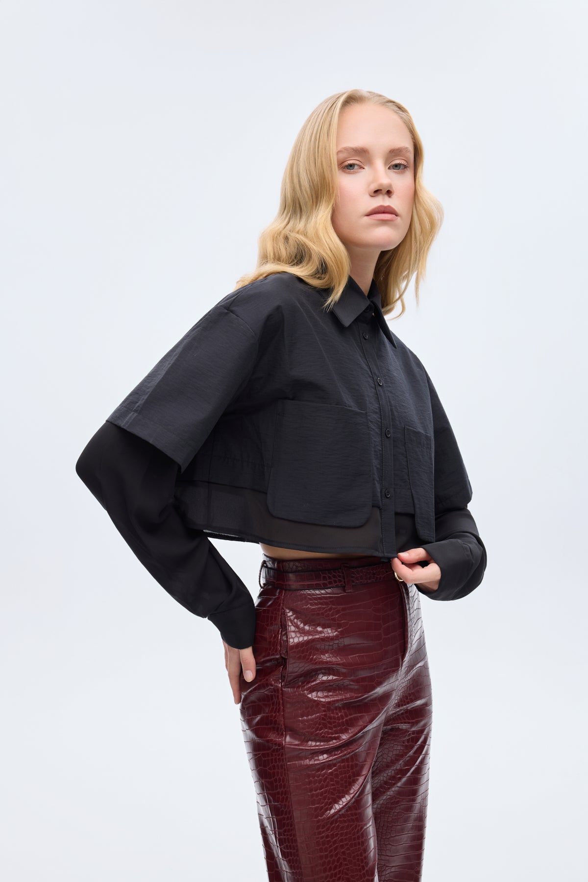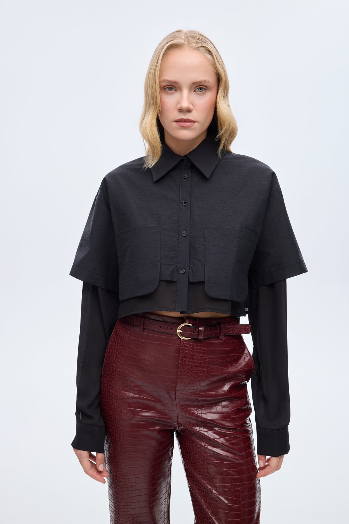 Çift Kat Görünümlü Crop Gömlek Siyah