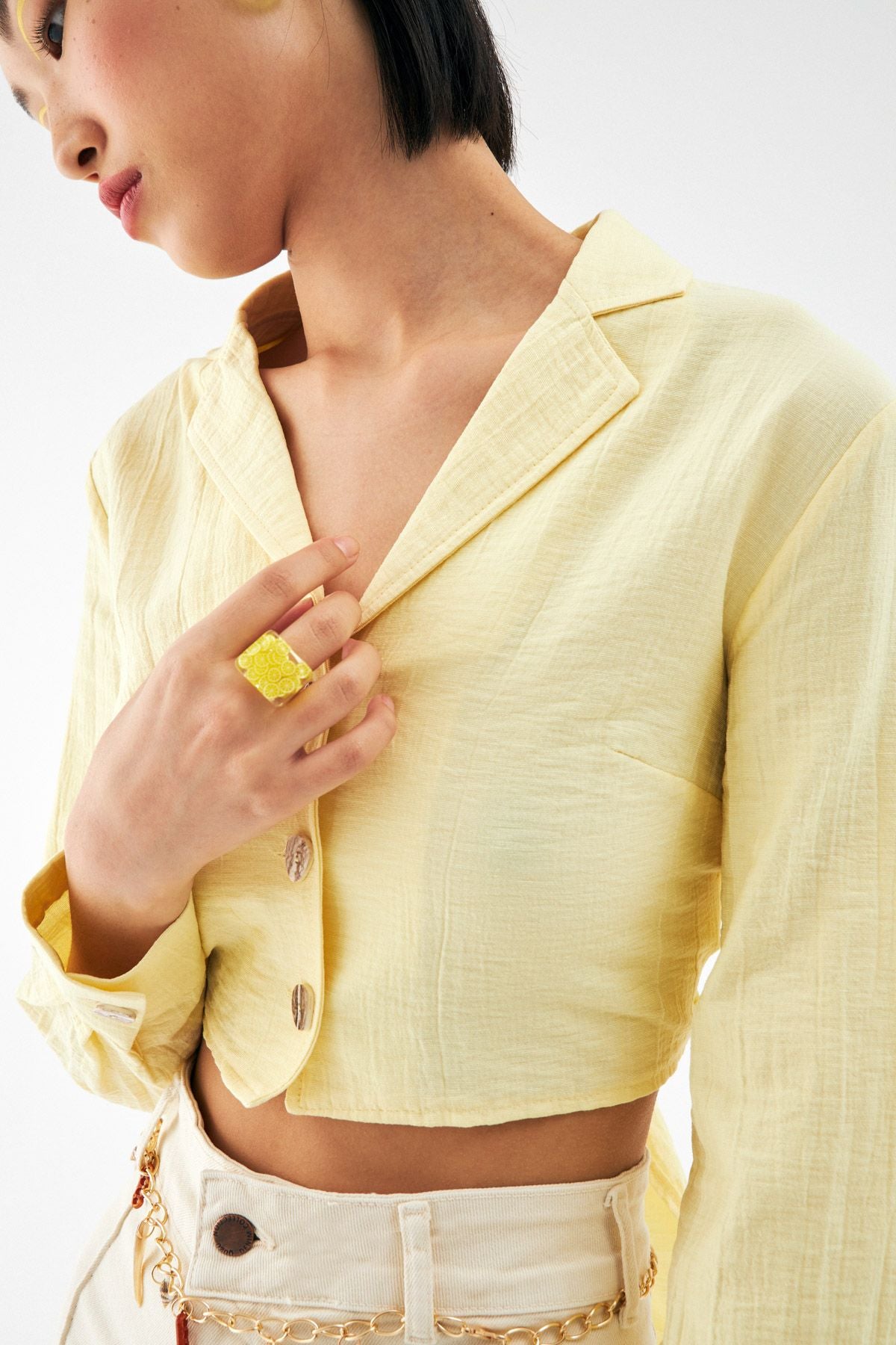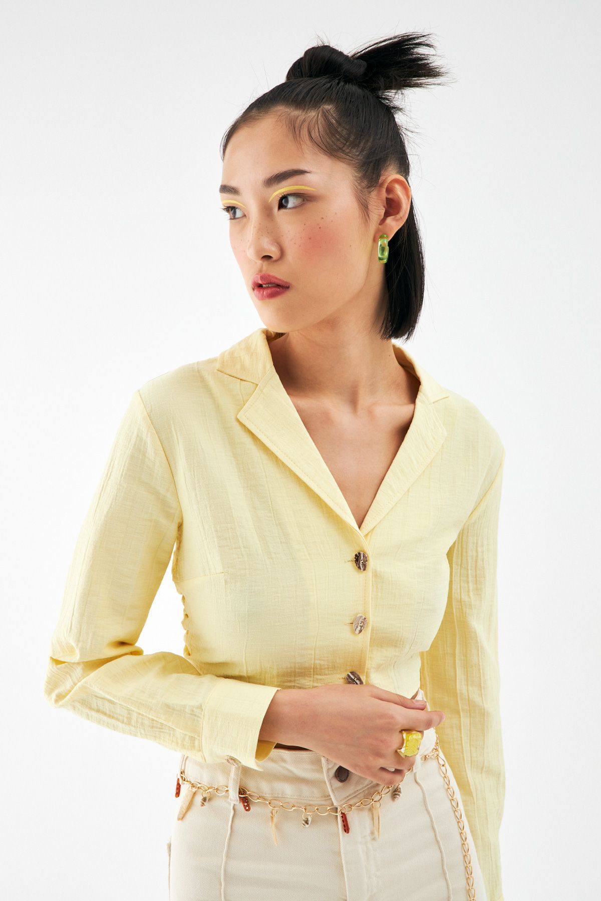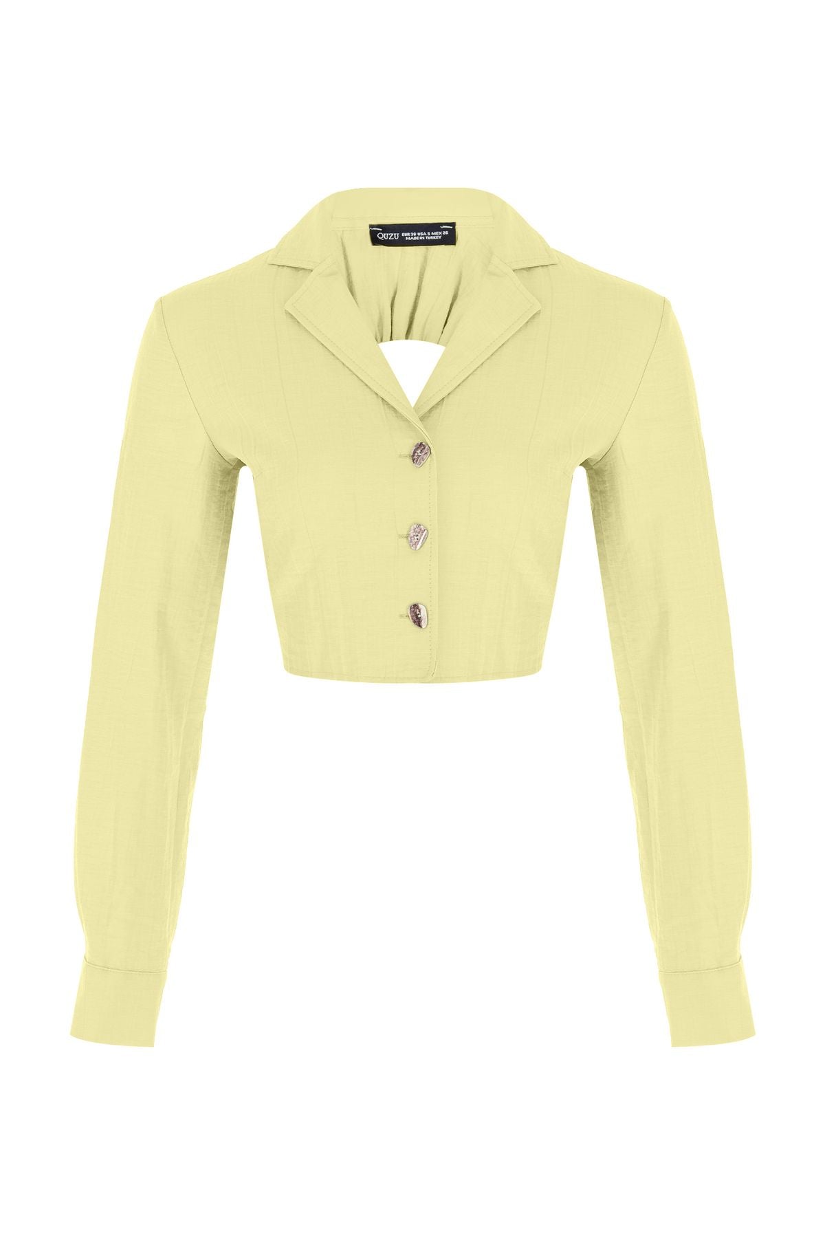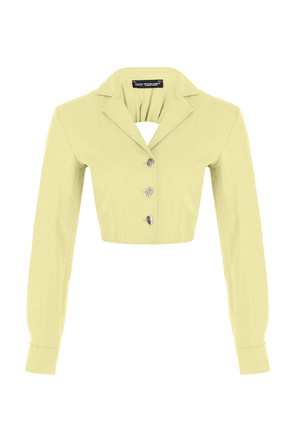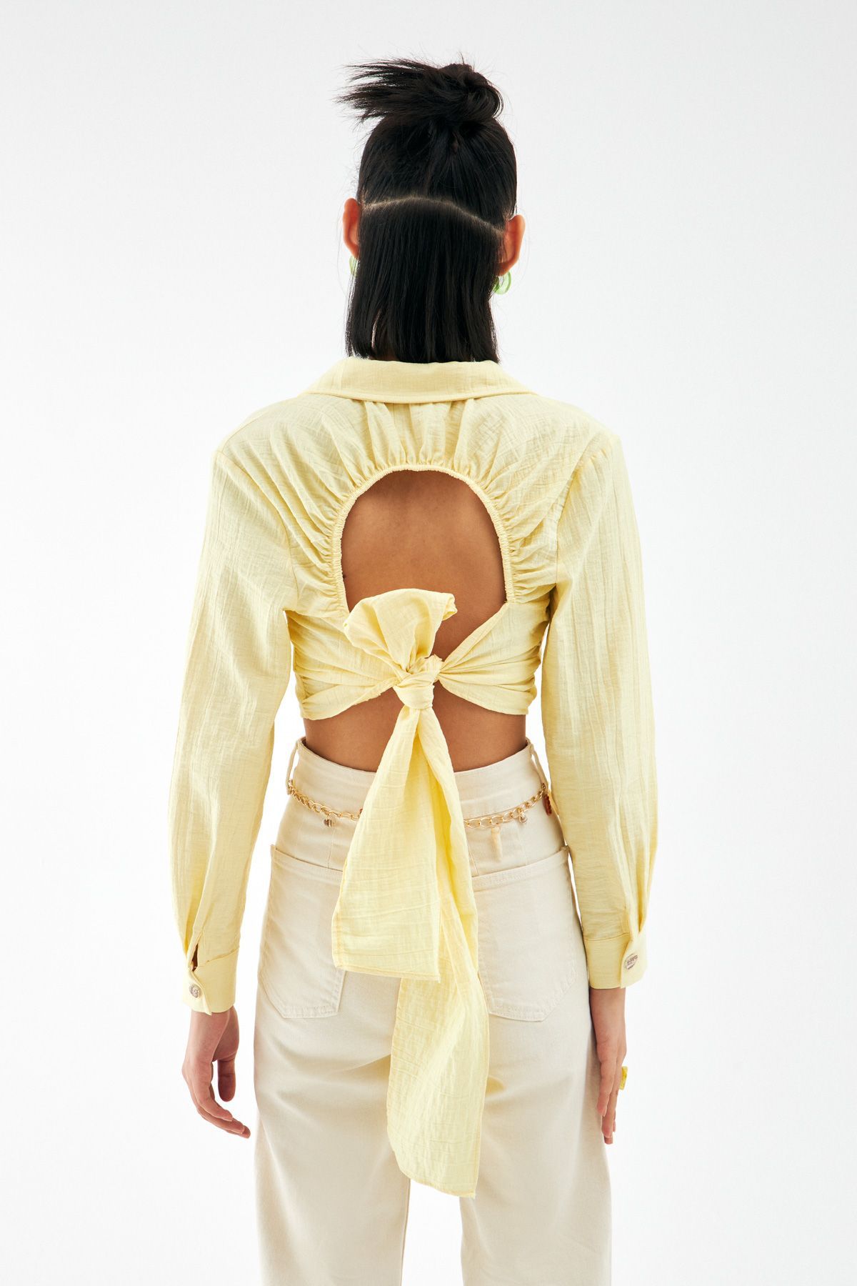 Sırt Bağlama Detaylı Crop Gömlek Sarı