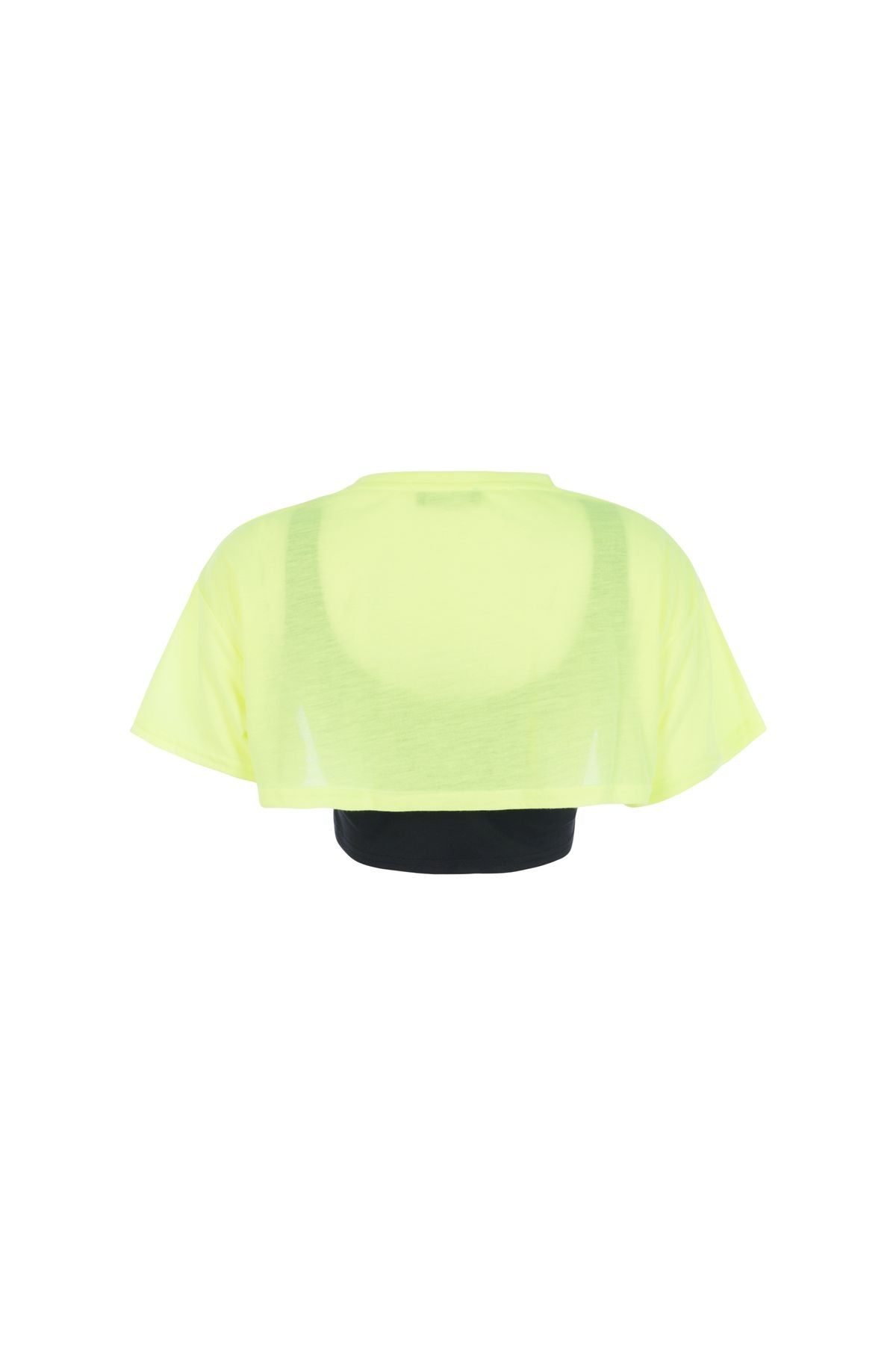 Baskılı Crop Tişört Neon Sarı