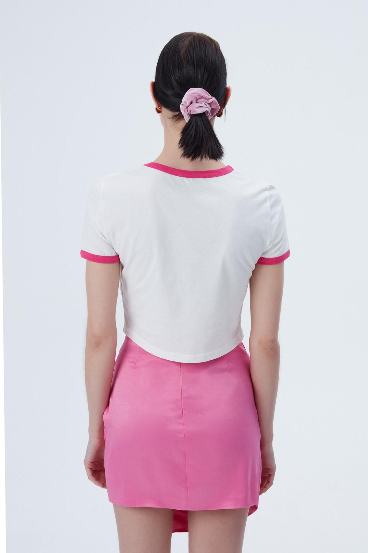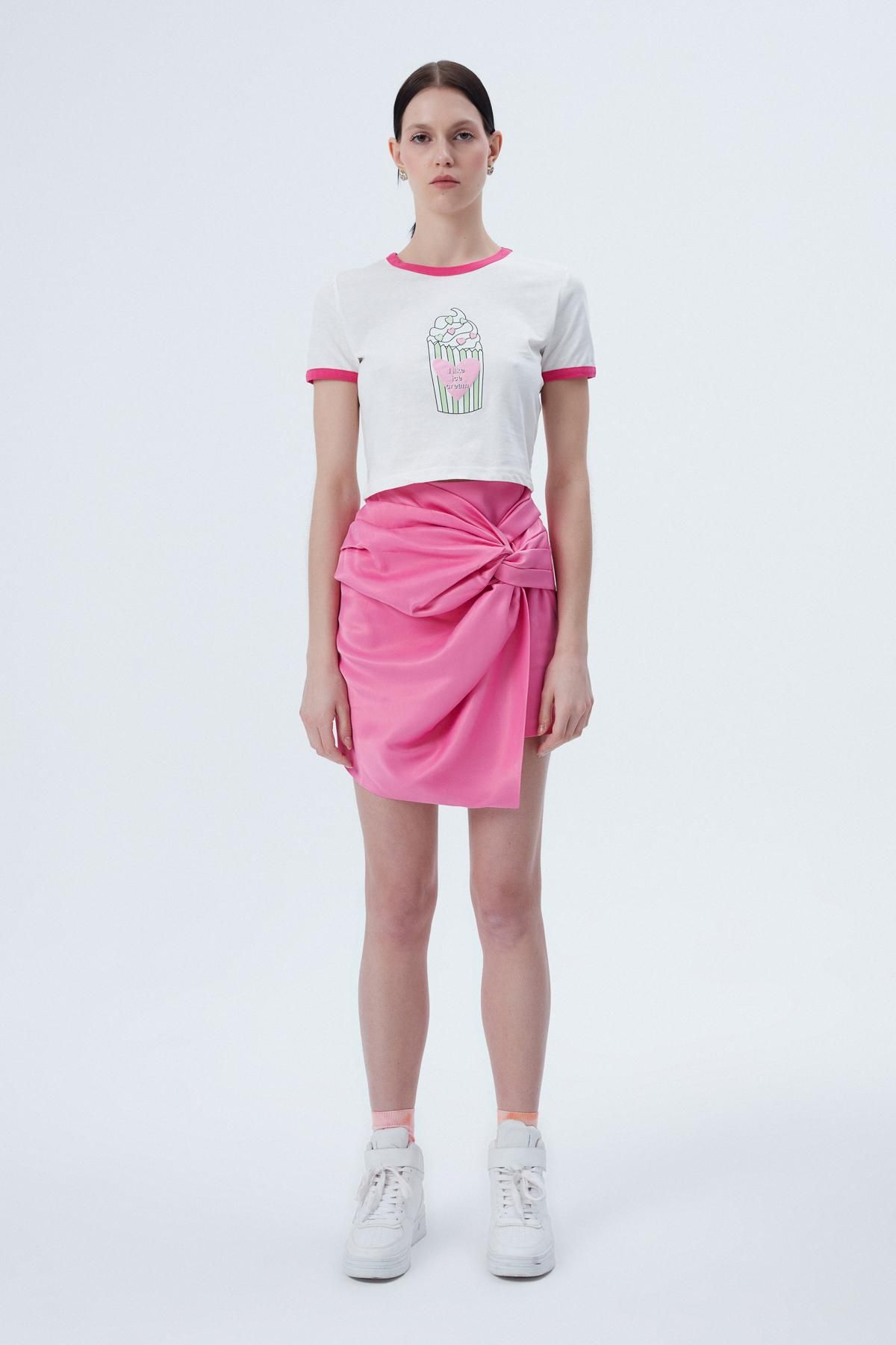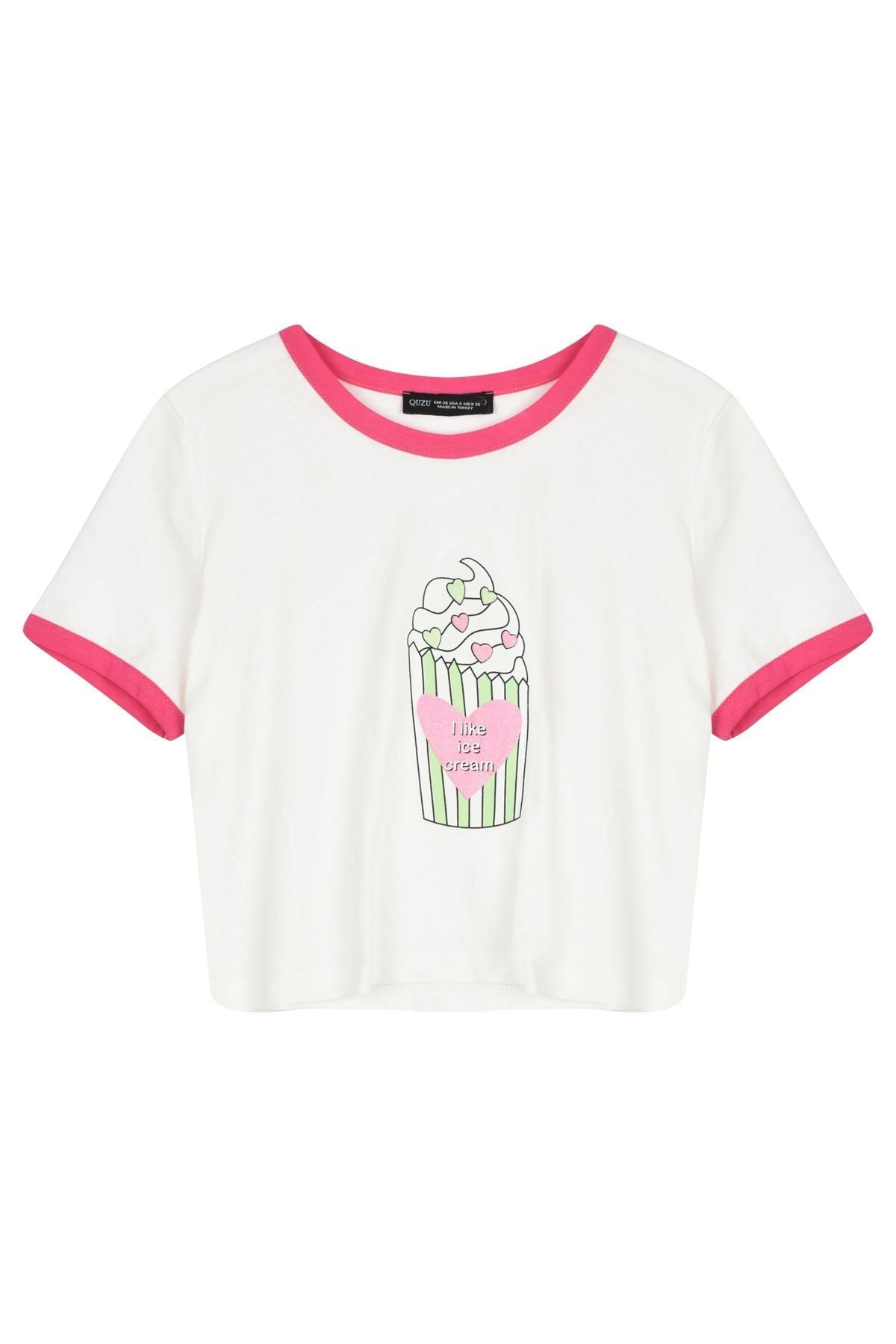 Dondurma Desenli Crop Tişört Ekru