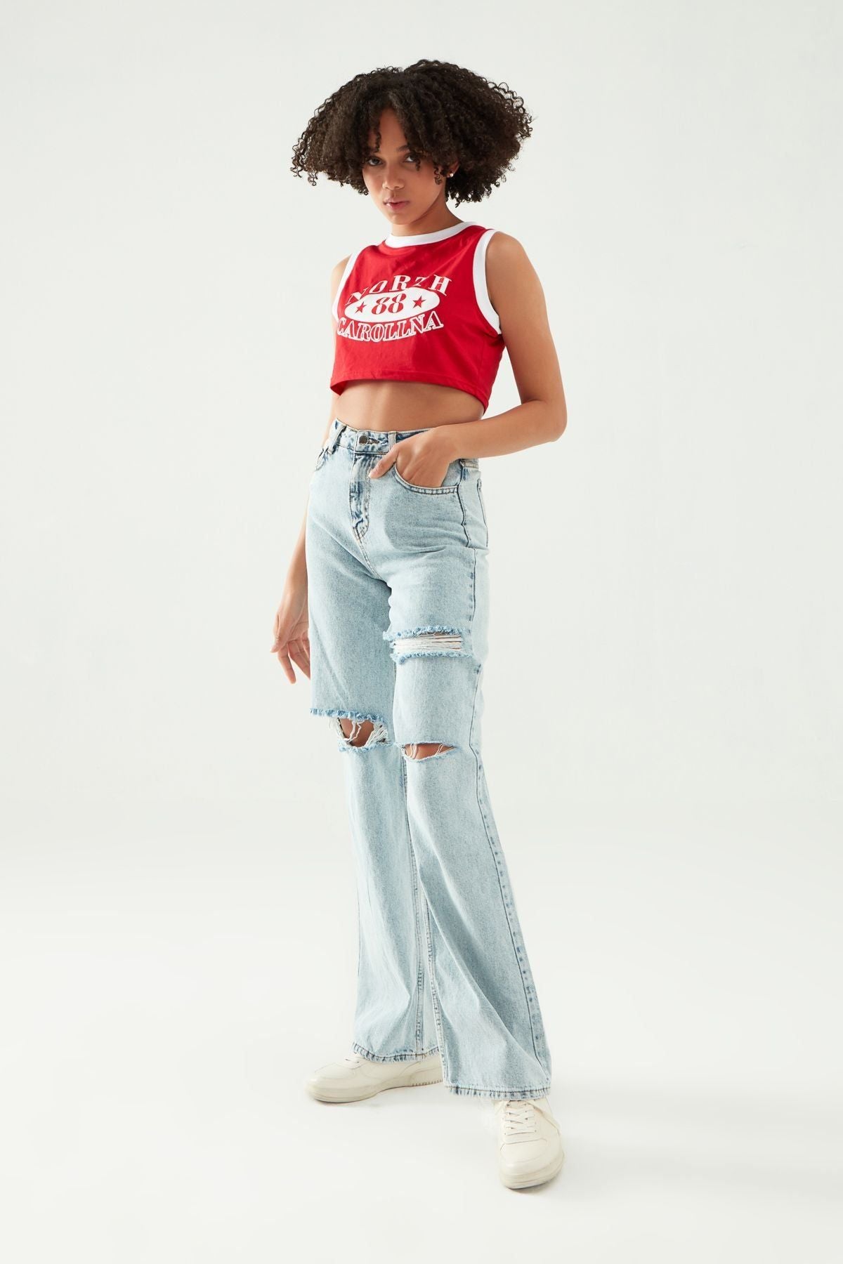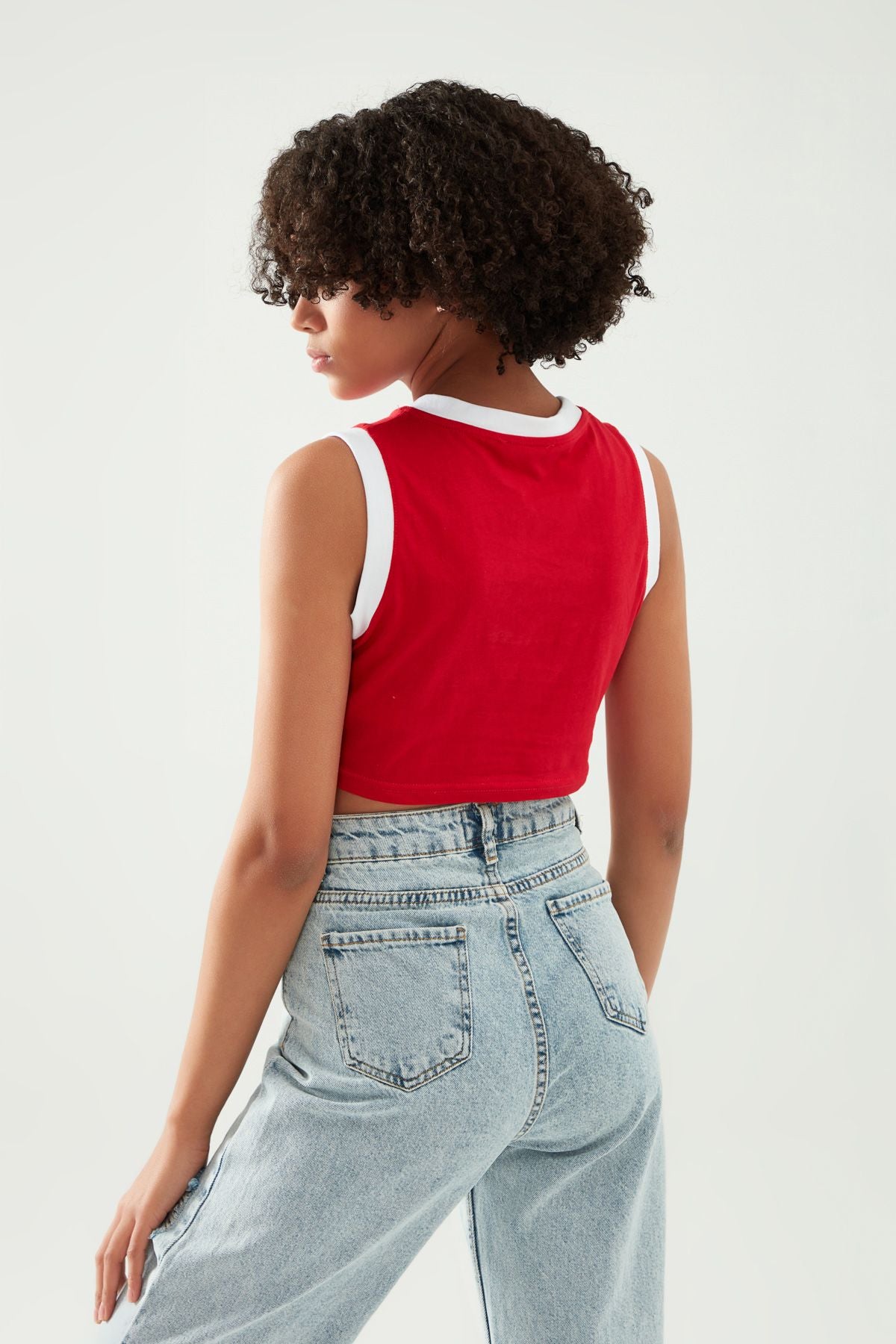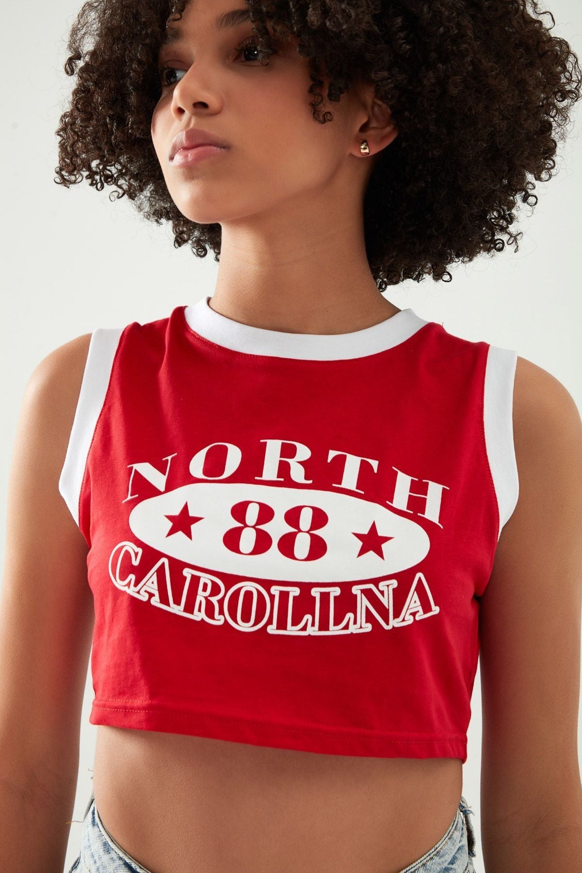 Kolsuz Baskılı Crop Tişört Kırmızı