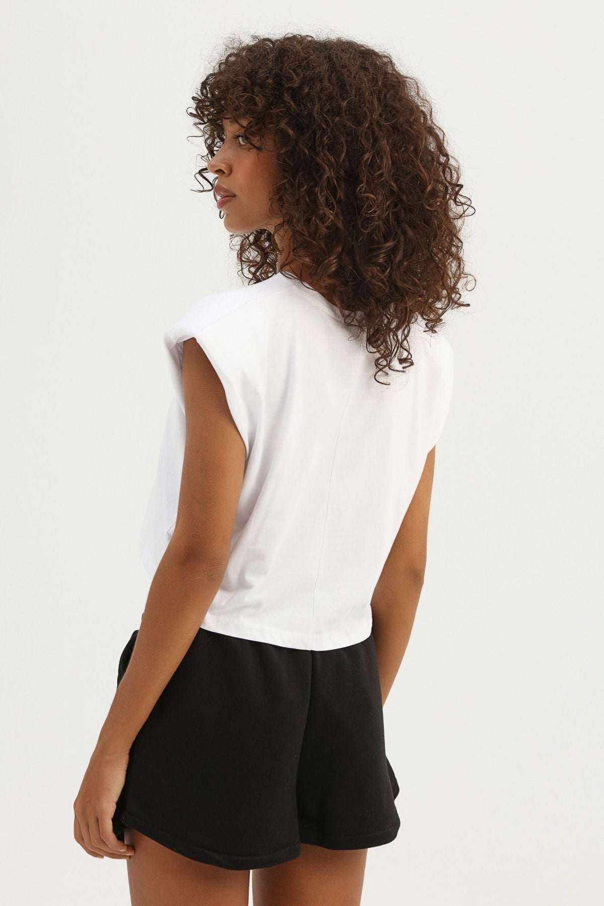 Vatkalı Basic Crop Tişört Beyaz