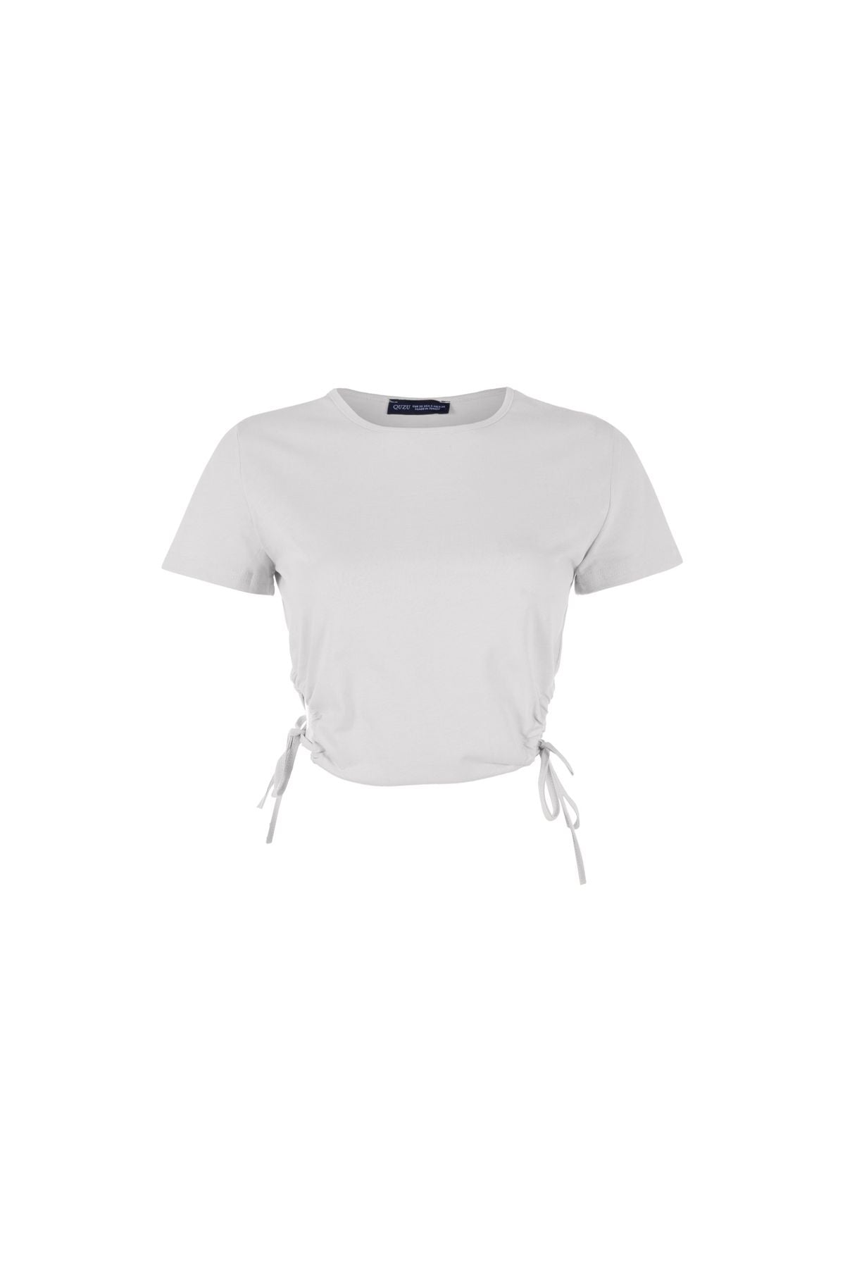 Yanları büzgülü %100 pamuklu crop tişört modeli ile dolabında doğal dokulara yer aç! Nefes alan yumuşacık dokusuyla seni şımartacak dekolteli crop tişört modelini, yüksek bel jean’lerinle birleştirerek kusursuz bir görünüm elde edebilirsin. Yüksek enerjine eşlik edecek dekolteli tişörtünü hem günlük kombinlerinde hem de arkadaş buluşmalarında kullanabilirsin.