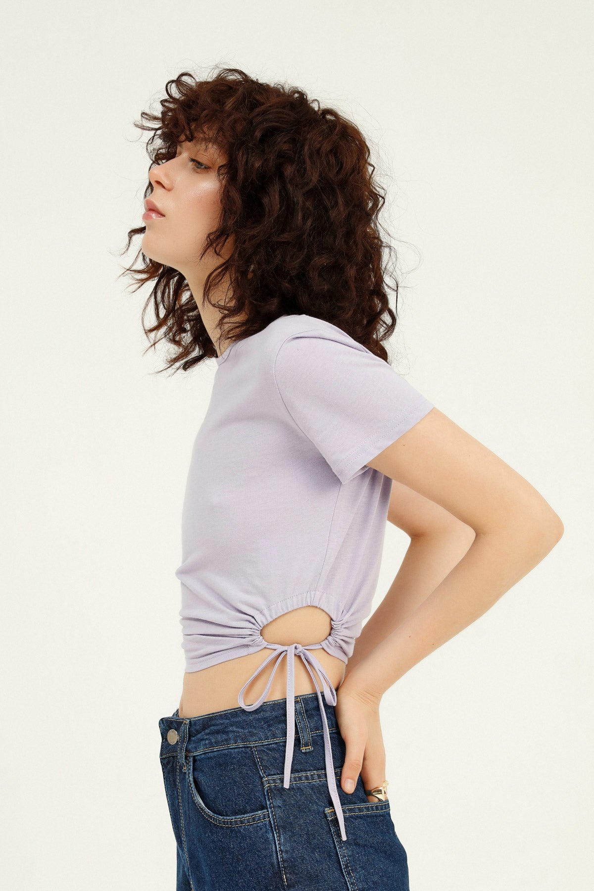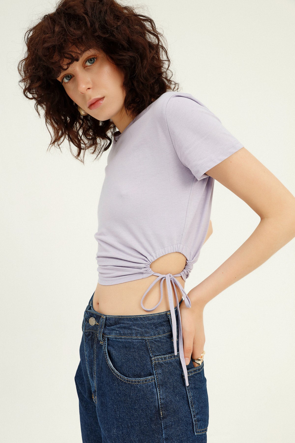 Yanları büzgülü %100 pamuklu crop tişört modeli ile dolabında doğal dokulara yer aç! Nefes alan yumuşacık dokusuyla seni şımartacak dekolteli crop tişört modelini, yüksek bel jean’lerinle birleştirerek kusursuz bir görünüm elde edebilirsin. Yüksek enerjine eşlik edecek dekolteli tişörtünü hem günlük kombinlerinde hem de arkadaş buluşmalarında kullanabilirsin.