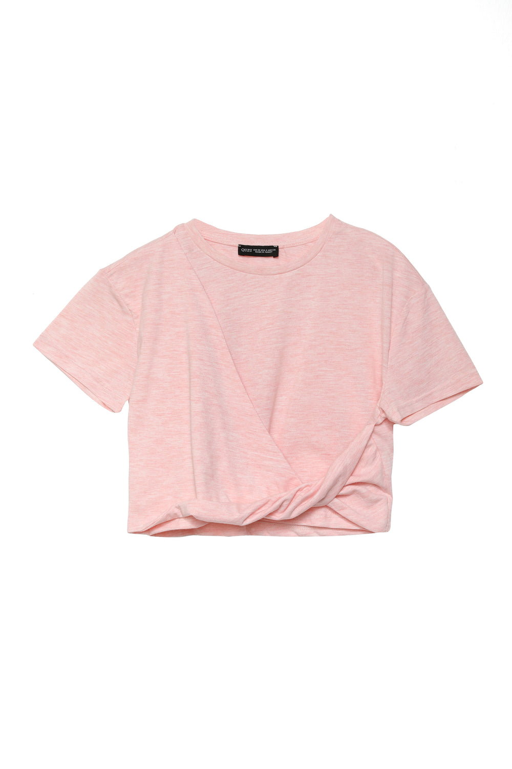 Dekolteli Bağlama Detaylı Tişört Pembe