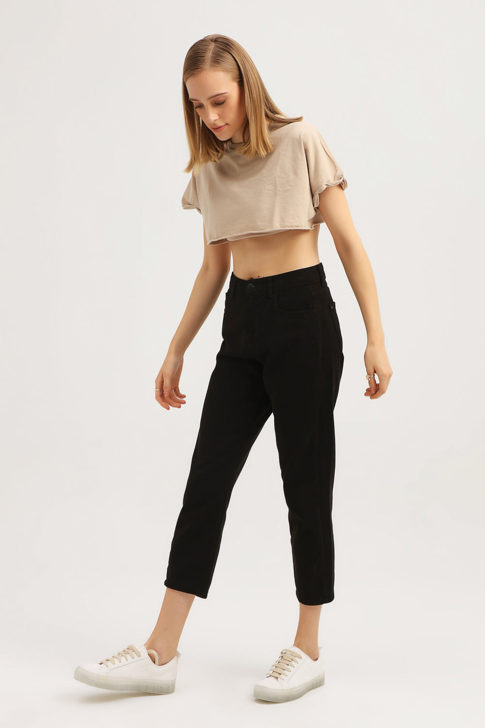 Basic Crop Tişört Açık Bej