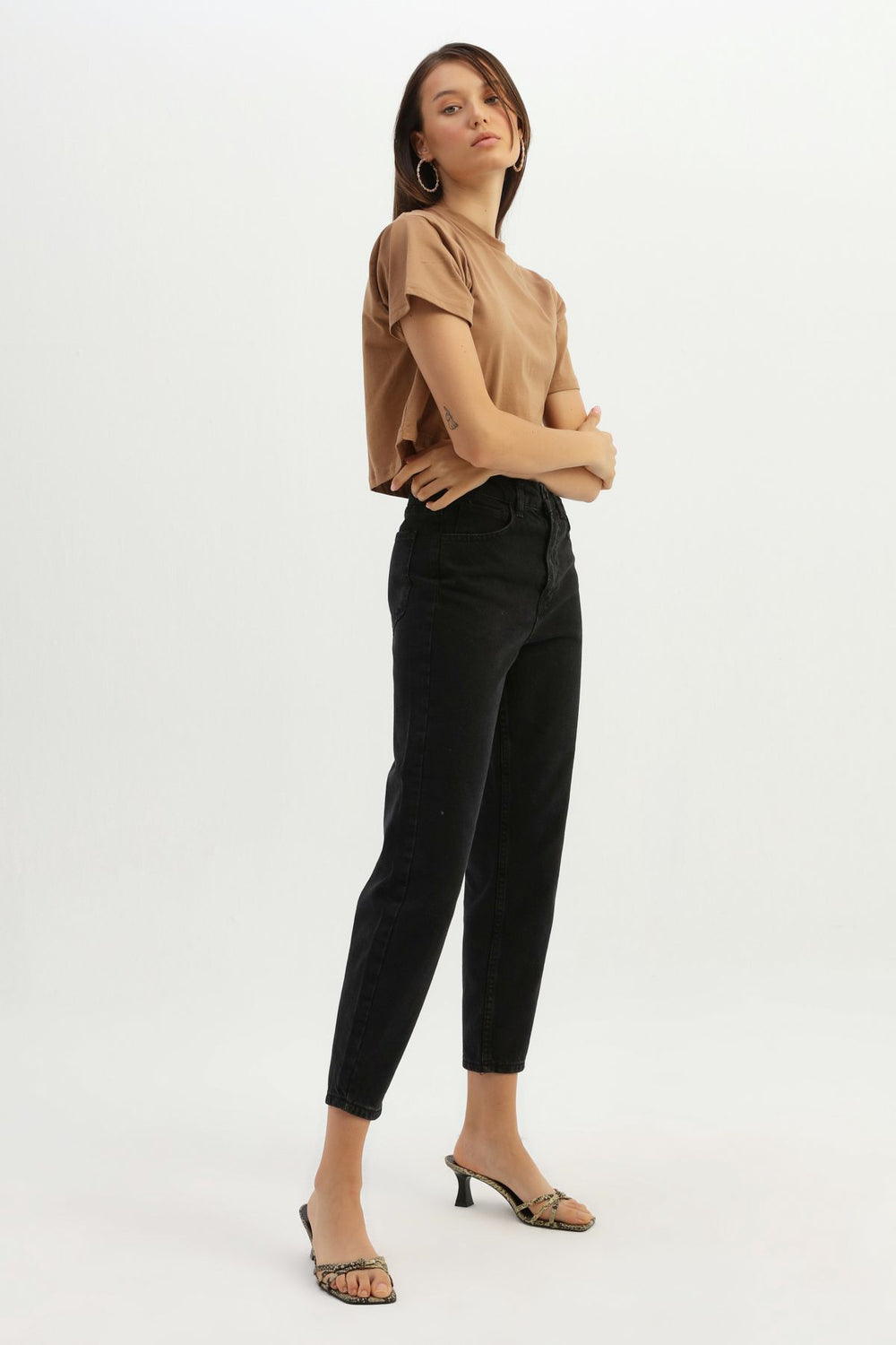 Crop Basic Tişört Kahverengi