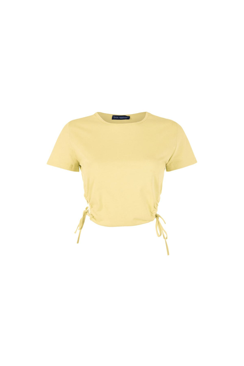 Yanları Büzgülü Dekolteli Tişört Sarı