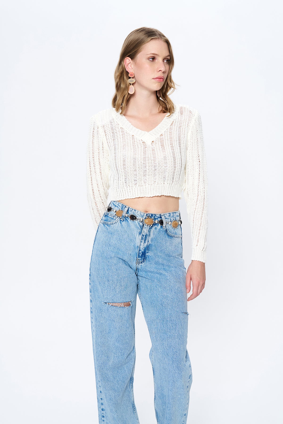 V yaka, uzun kollu, vatkalı, crop kesİm örgü trİko.
