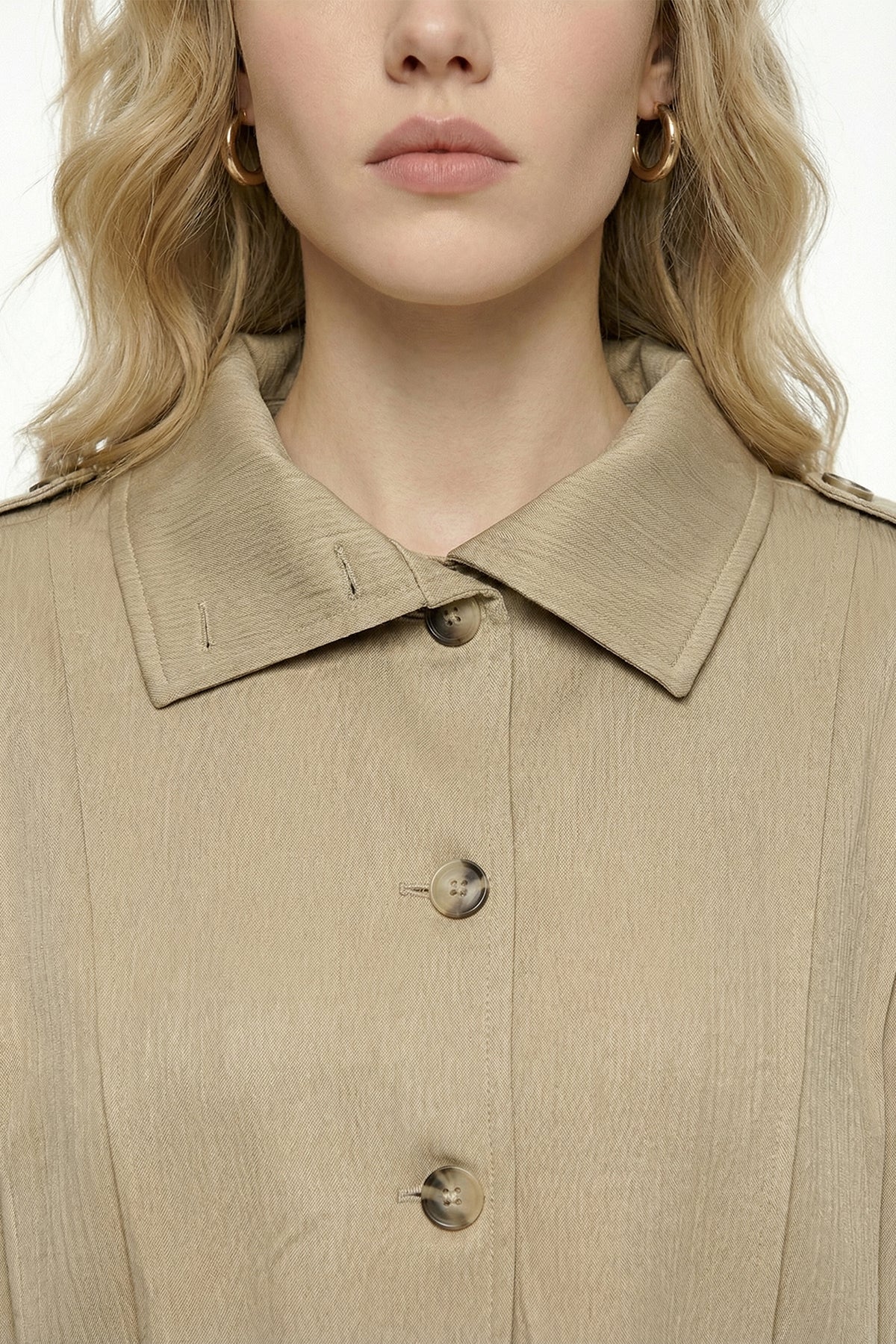 Apoletli Pile Detaylı Kısa Ceket Bej