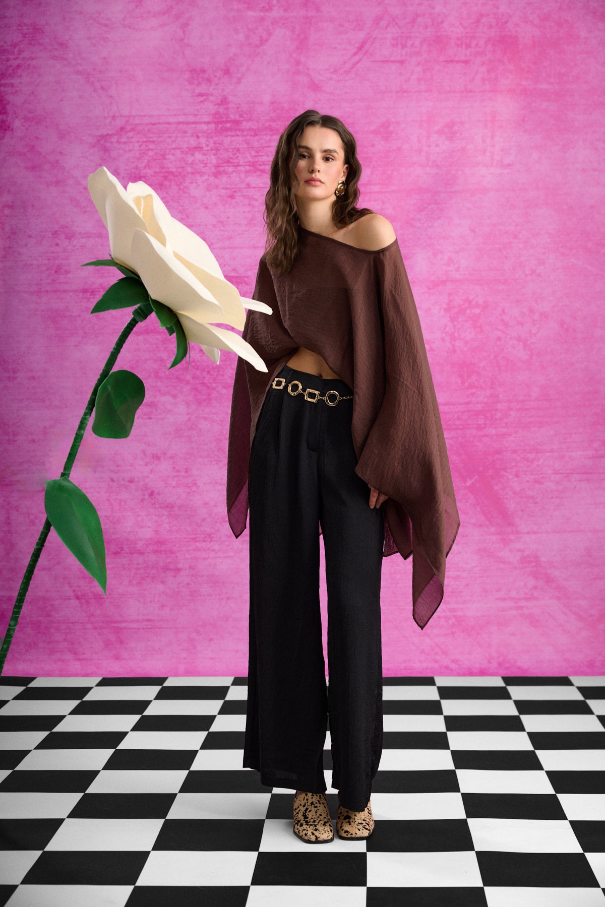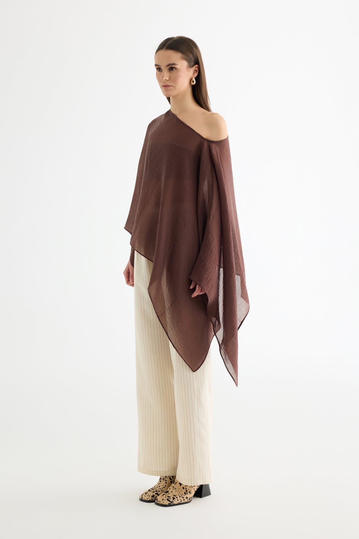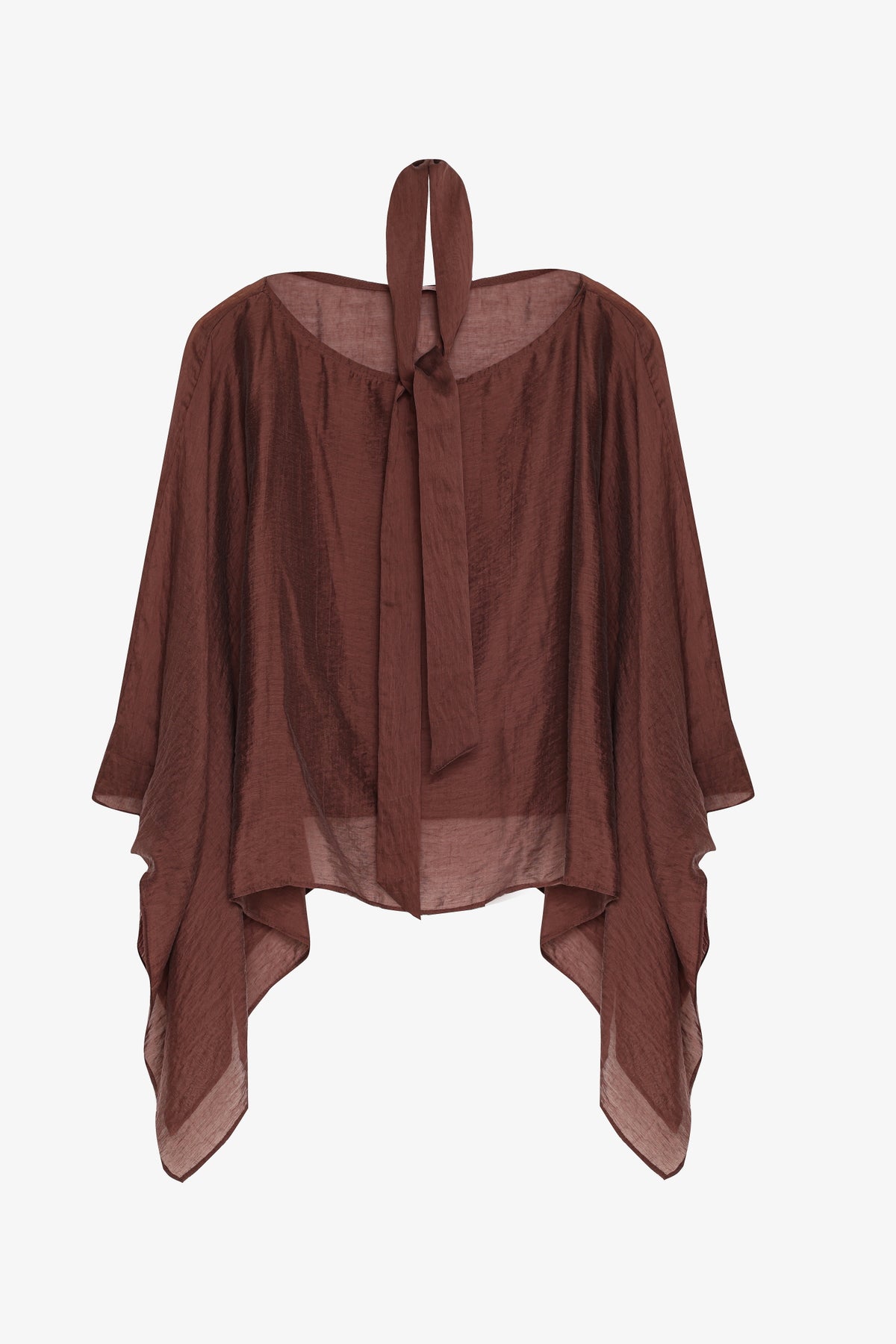Fular detaylı yaka formda, yarasa kollu, dokulu ve transparan kumaştan üretilmiştir iç gösterebilmektedir, panço bluz.
