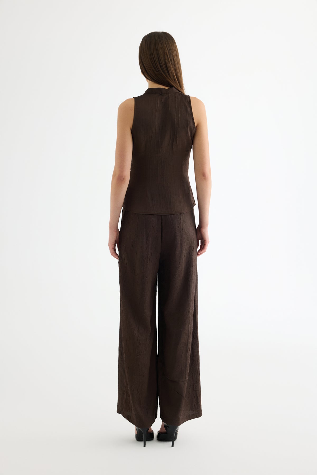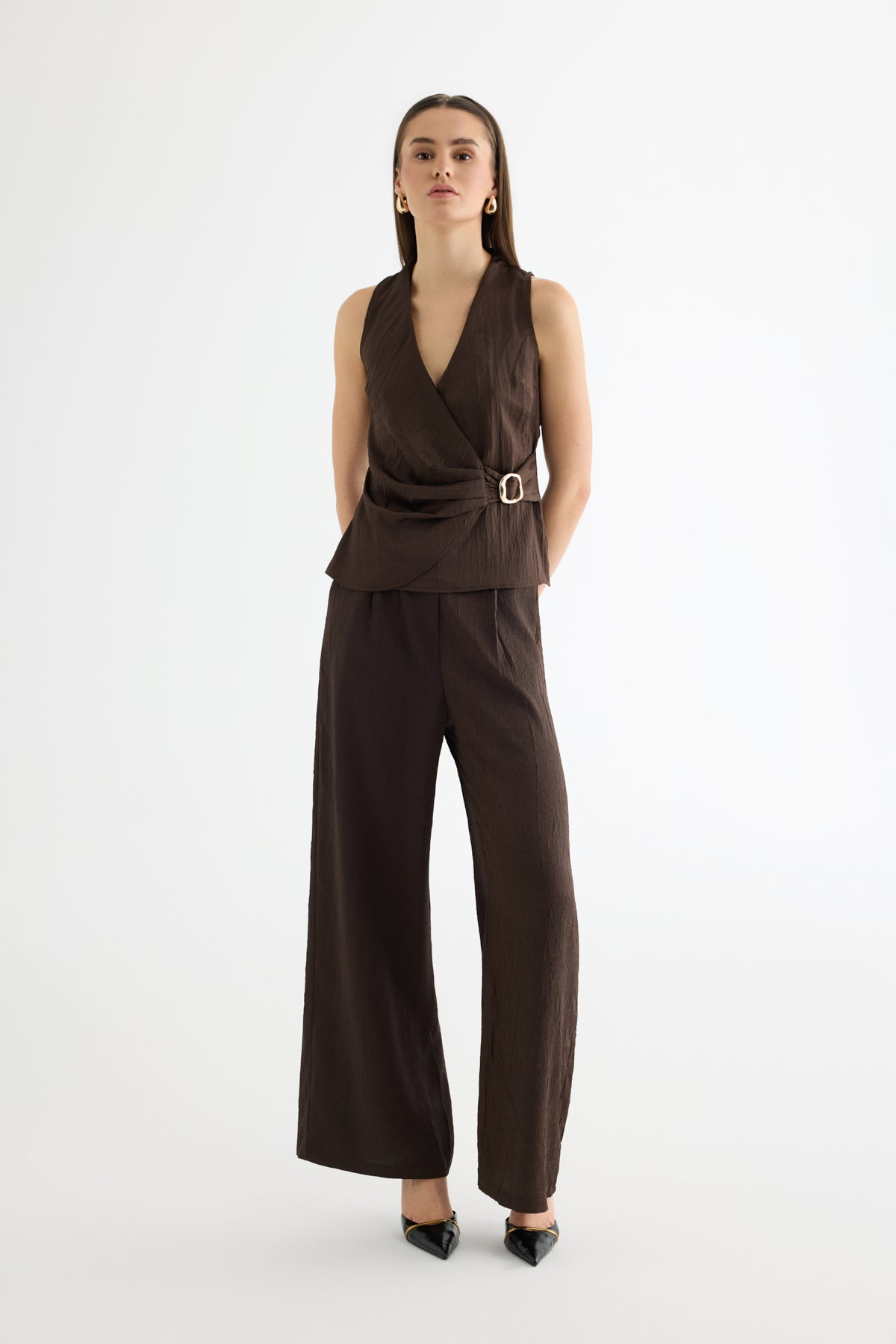 Toka Aksesuarlı Anvelop Bluz Kahverengi