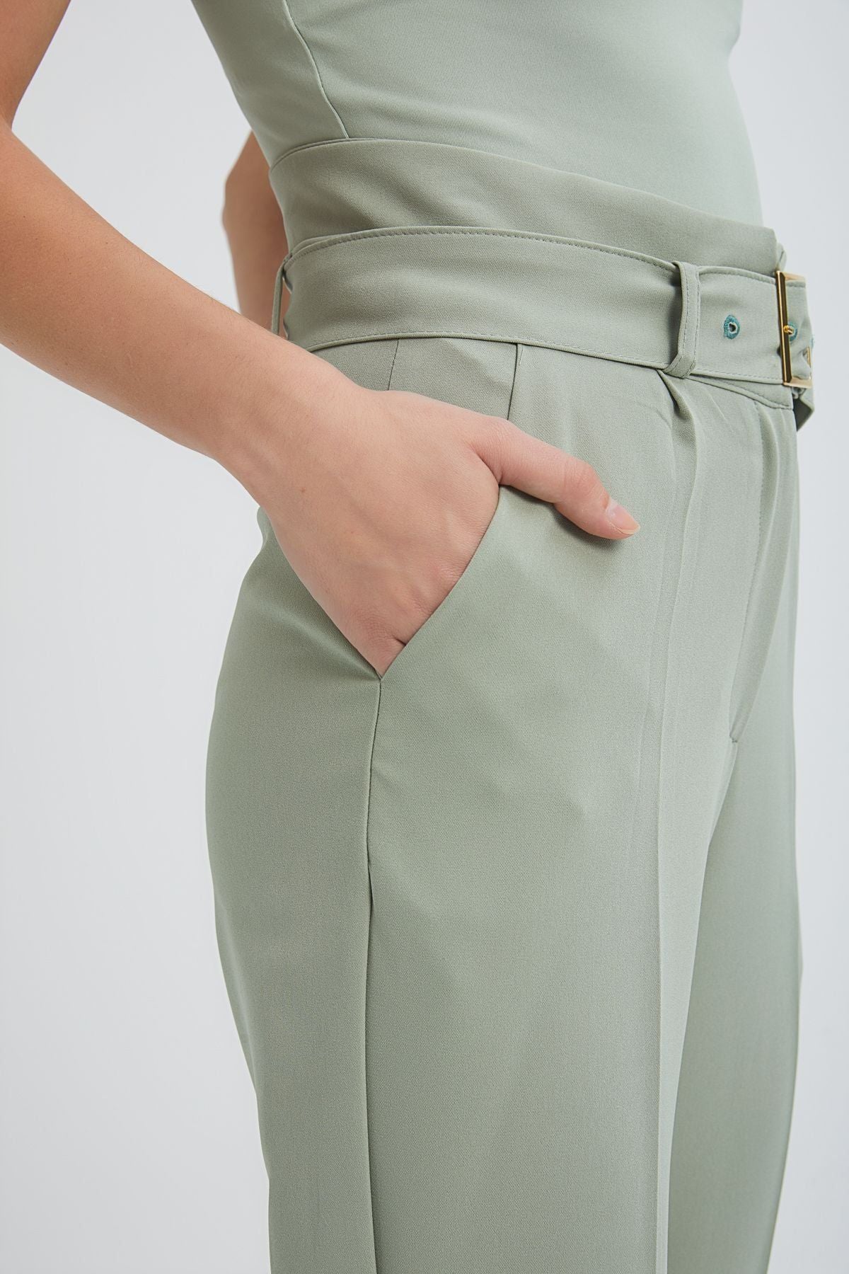 Kemerli Yüksek Bel Casual Pantolon Mint