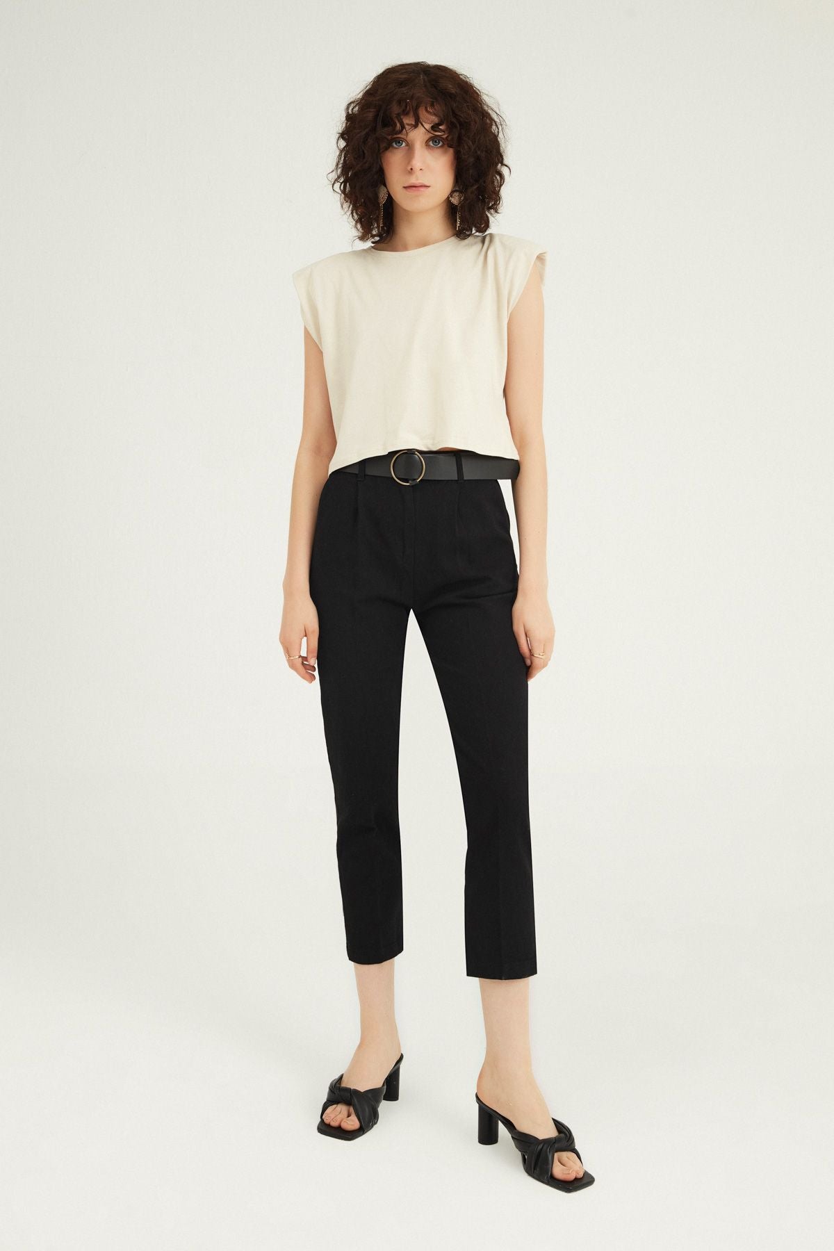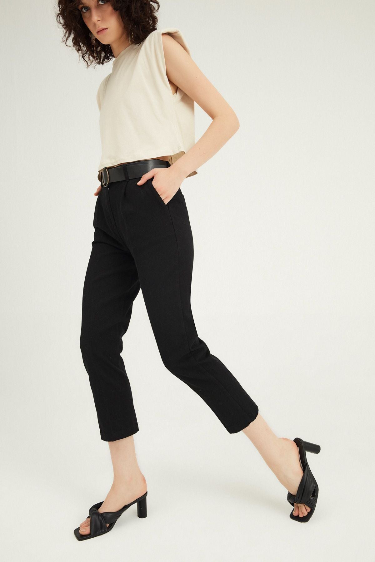 Kemerli Yüksek Bel Pantolon Siyah