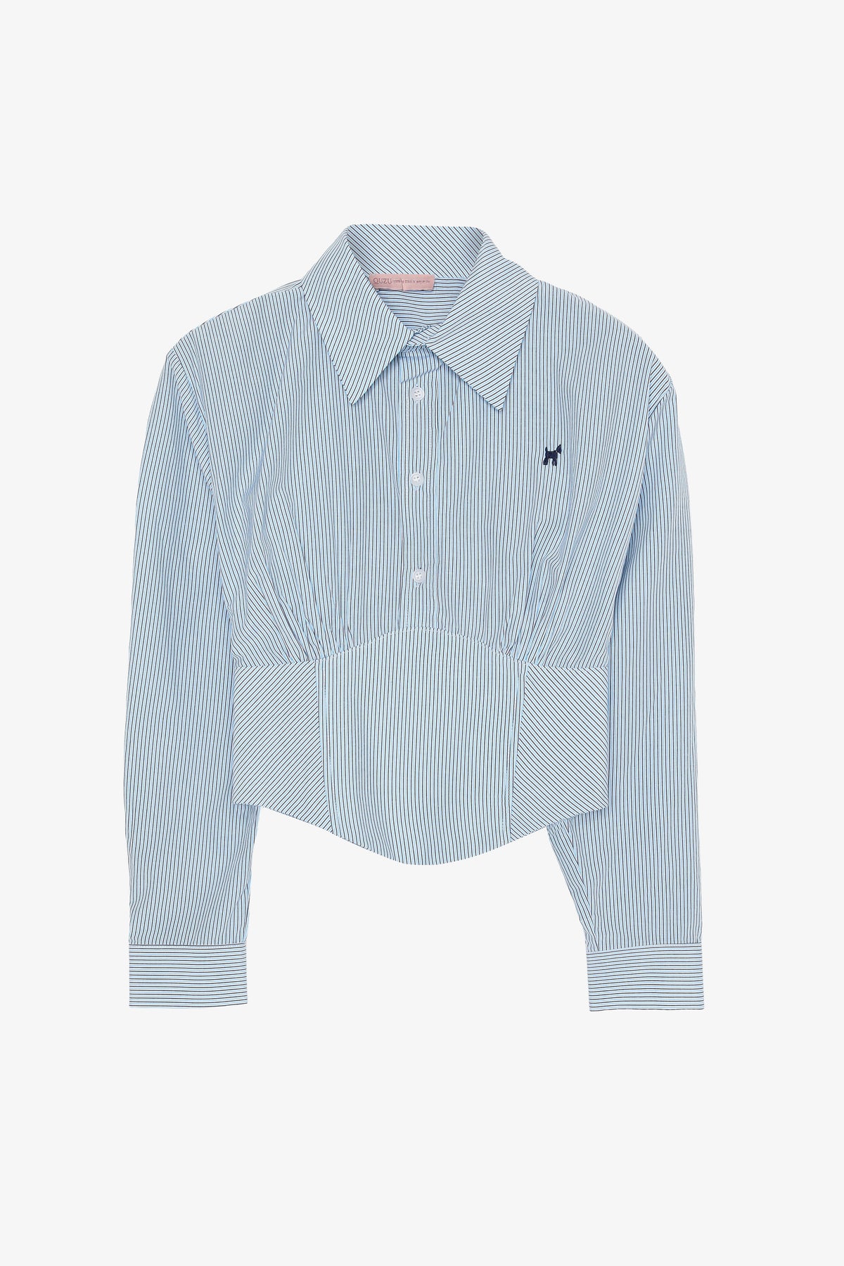 Nakış işlemeli Çizgili Korse Gömlek Mavi