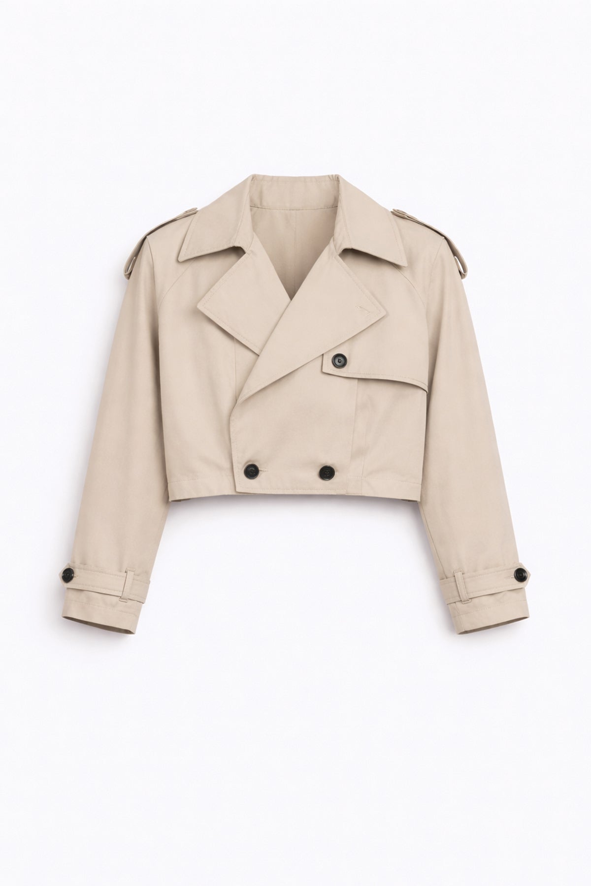 Apoletli Kruvaze Yaka Kısa Trençkot Bej
