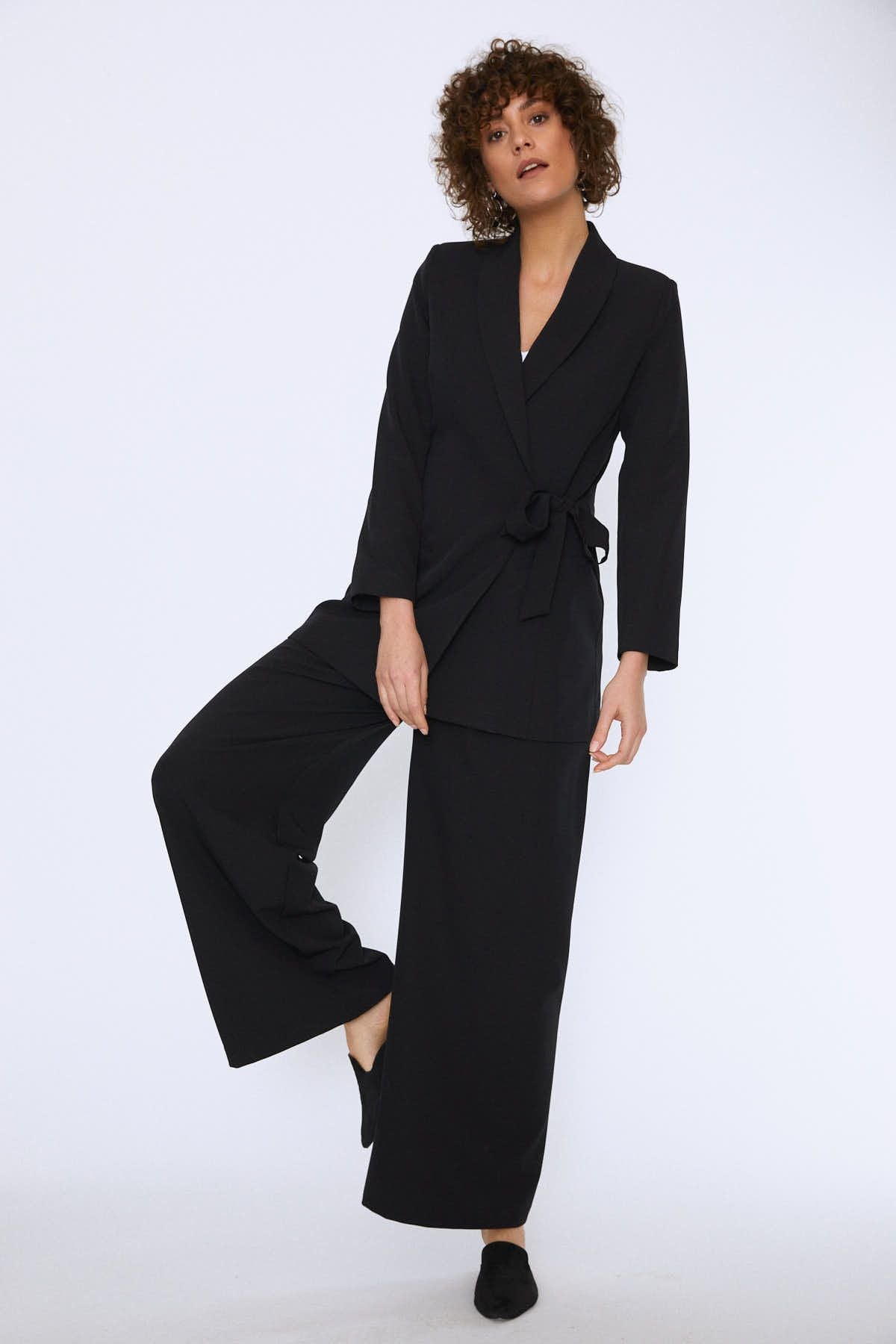 Hem ofis hem günlük stilinin en tarz seçimlerinden olacak belden bağlamalı şal yaka ceket, sezonun trendlerini tam anlamıyla yansıtıyor.