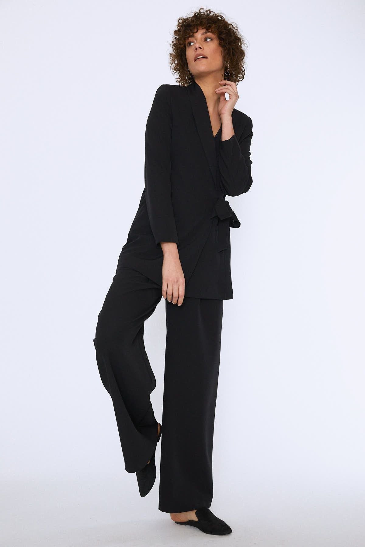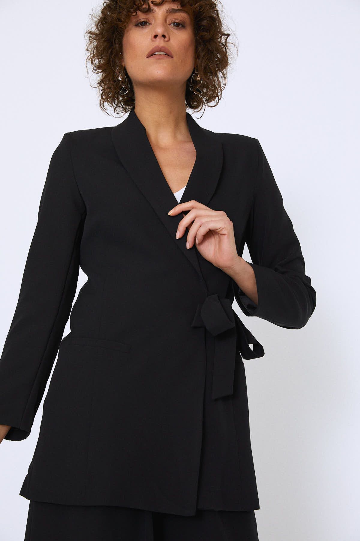 Beli Bağlamalı Şal Yaka Ceket Siyah
