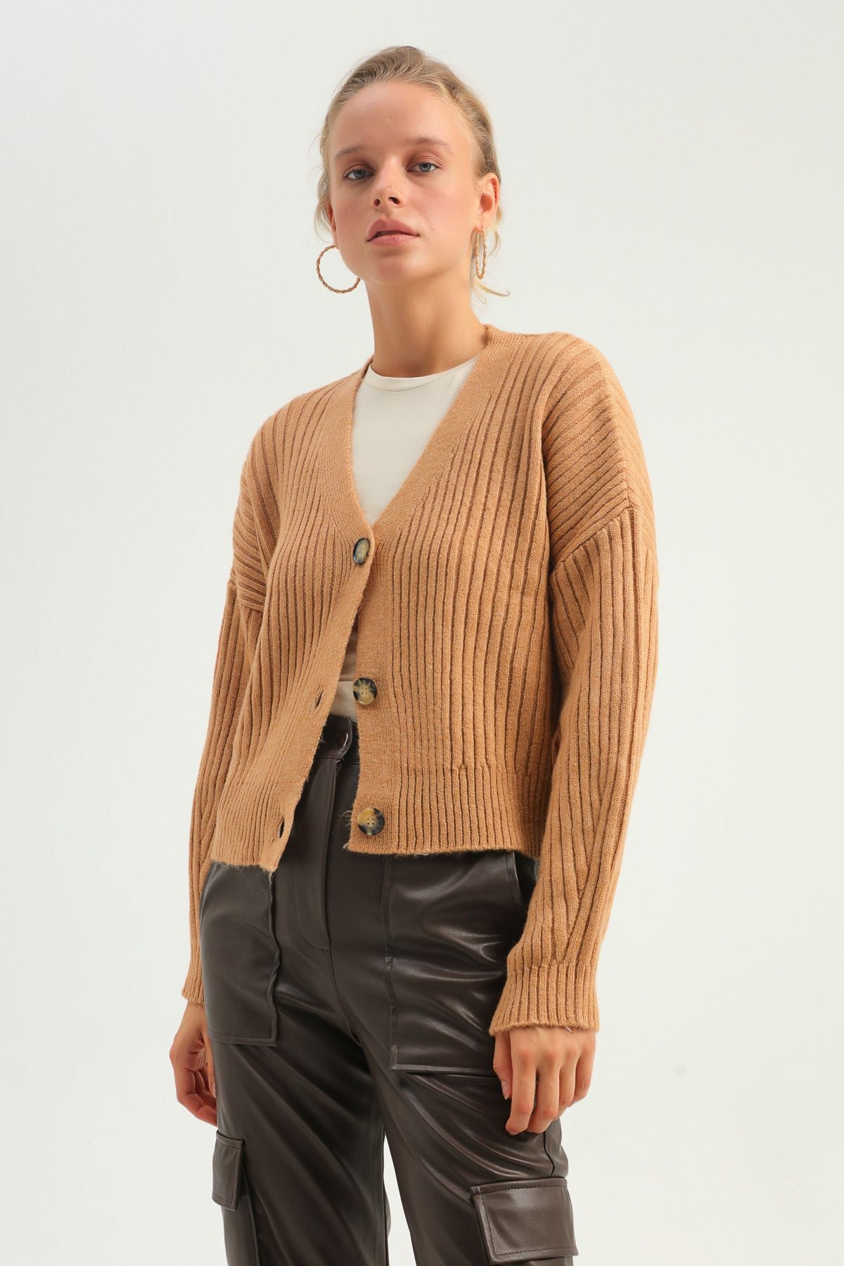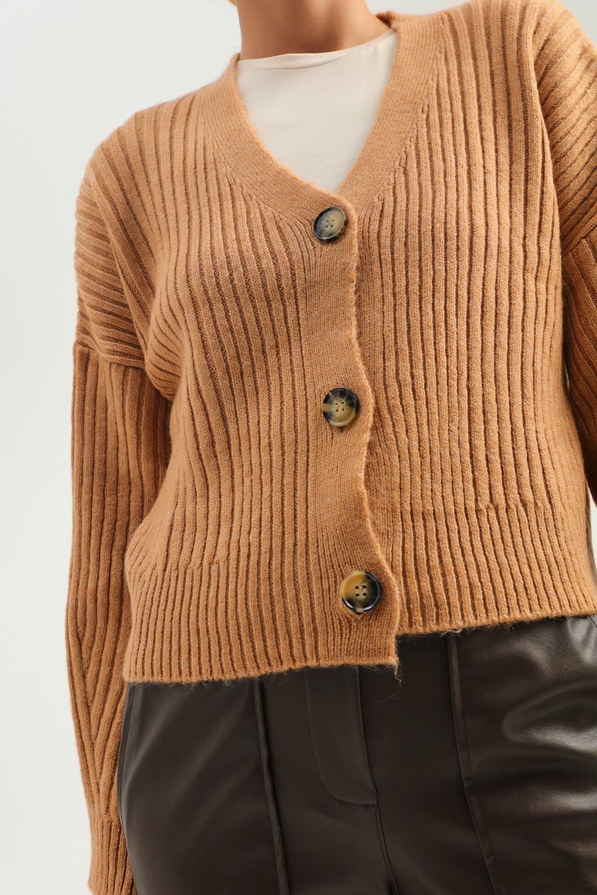 Düğmeli Hırka Camel