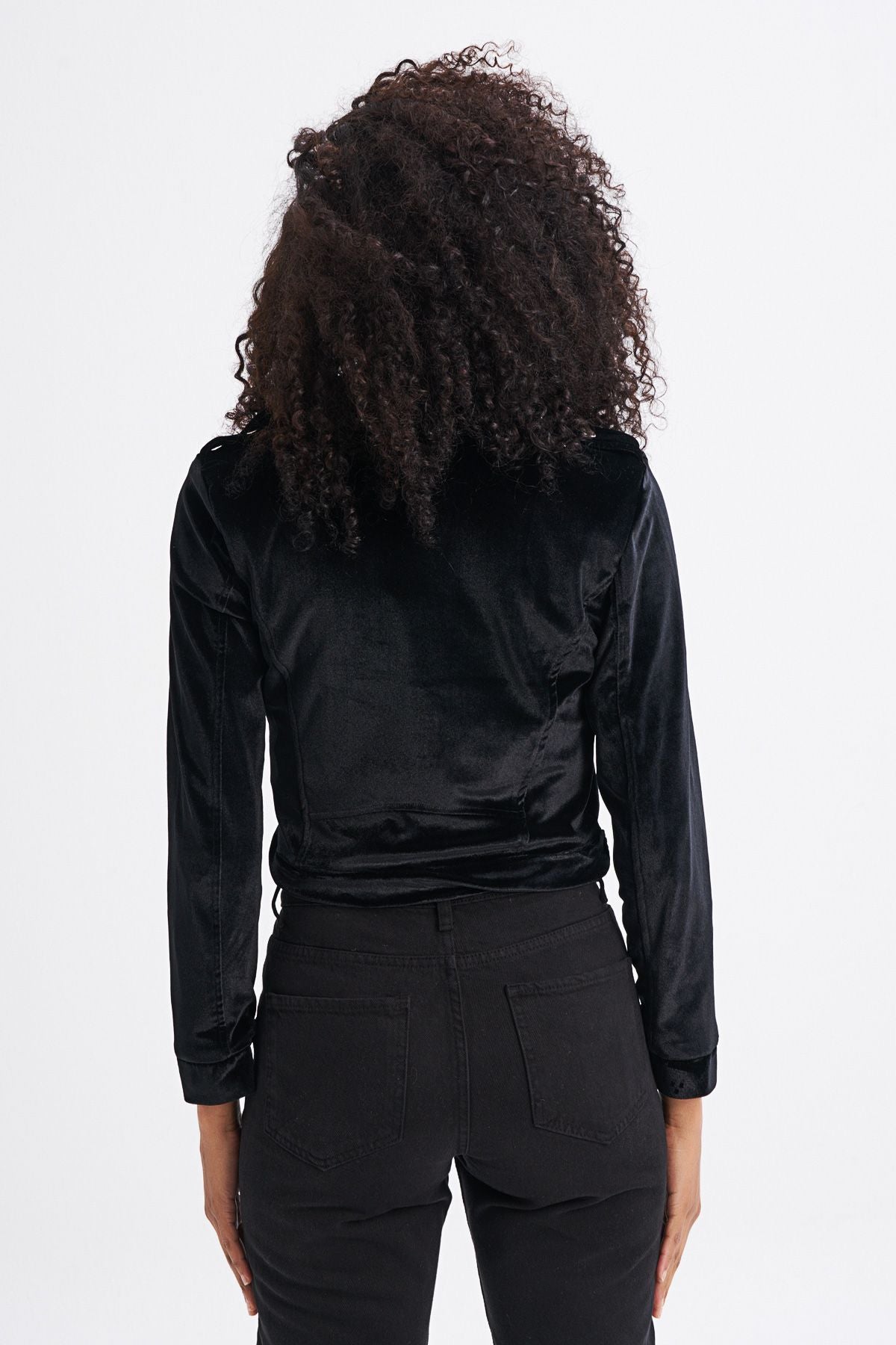 Kemerli Kadife Ceket Siyah