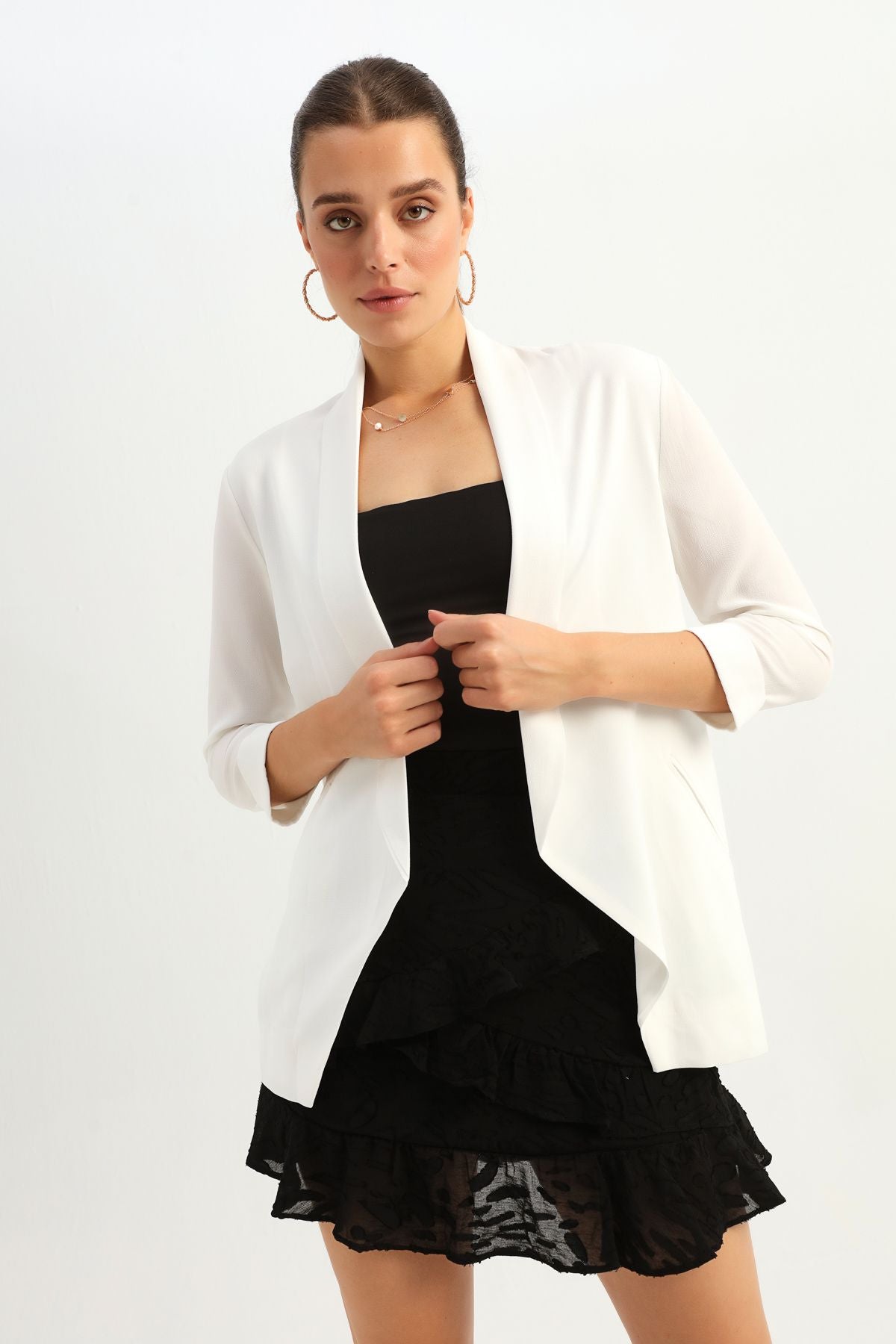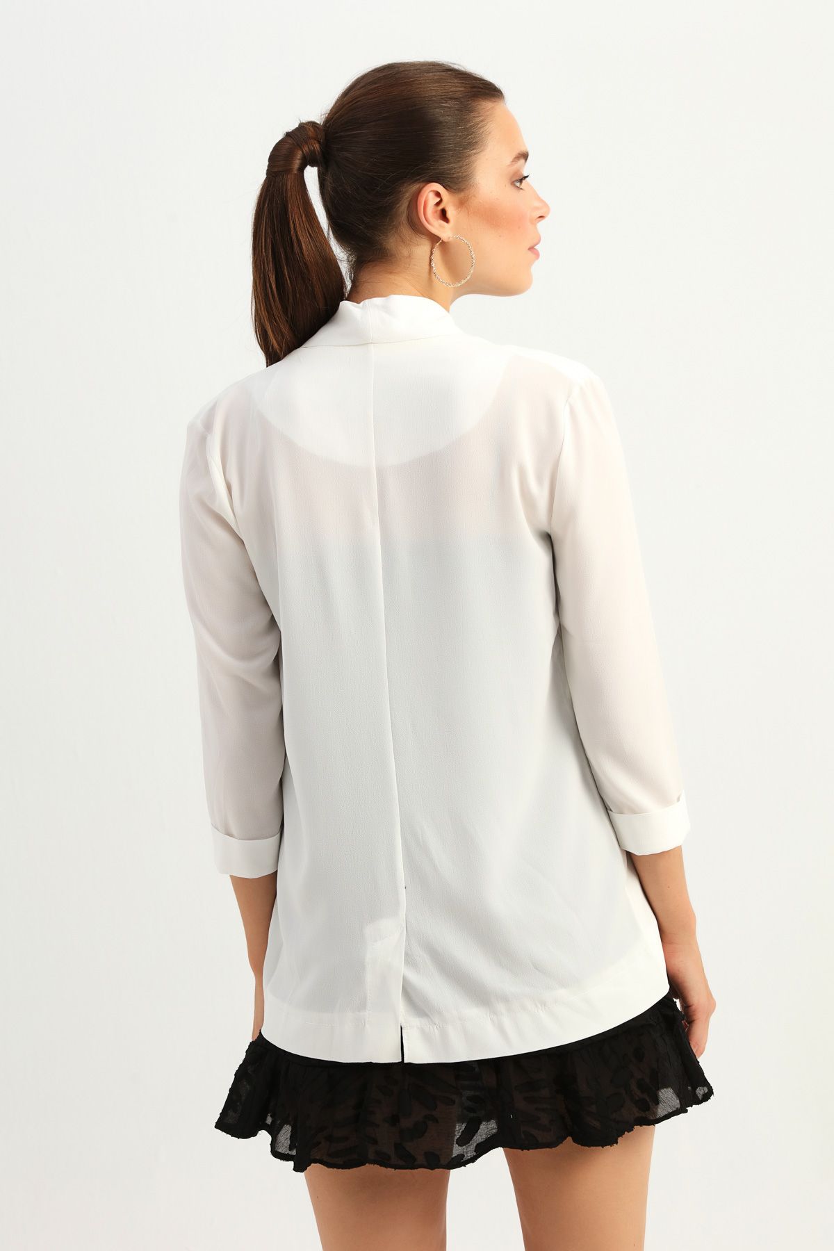 Şal Yaka Fileto Cepli Ceket Ekru