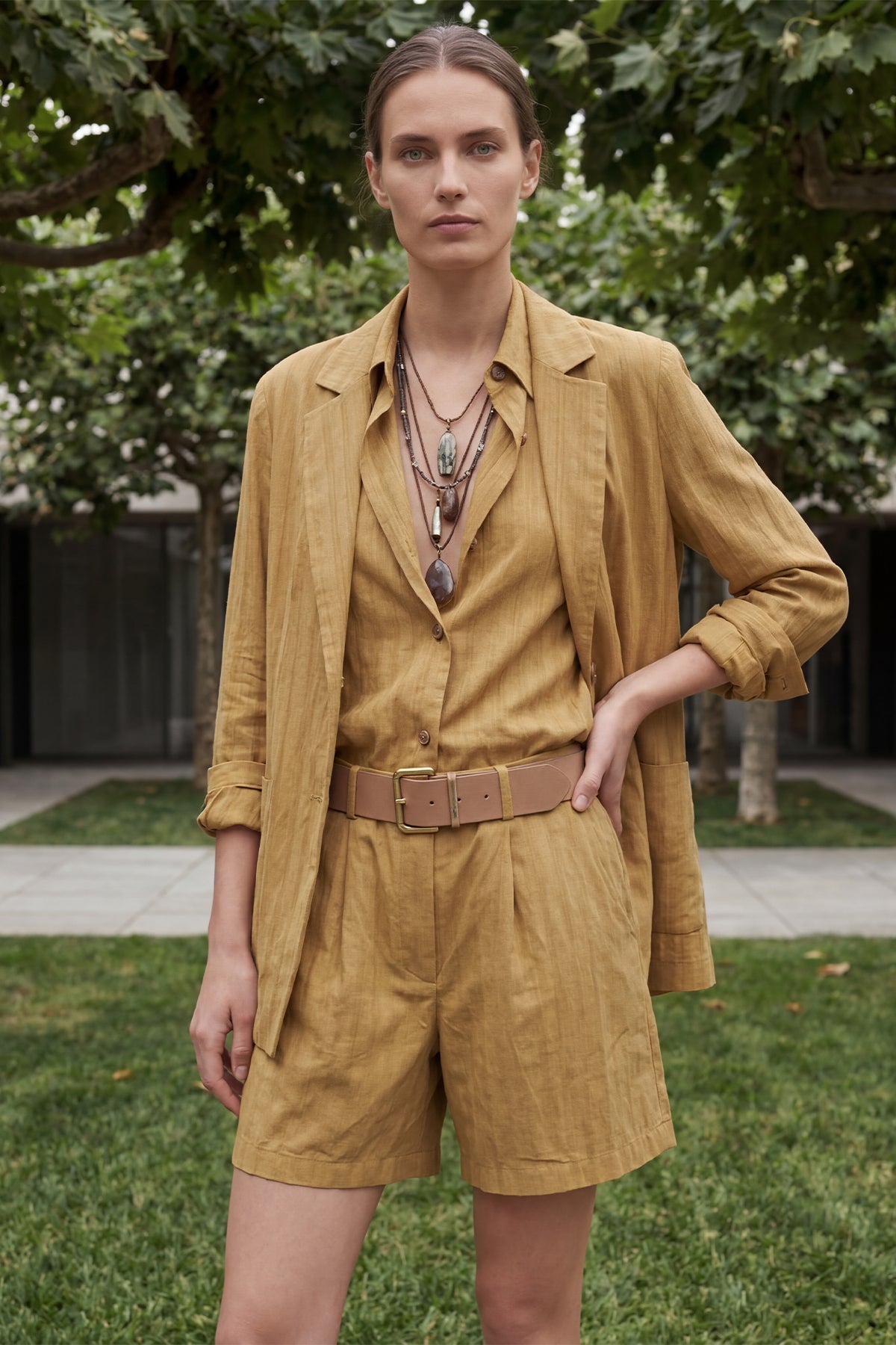 Transparan Dokulu Gömlek Ceket Bej