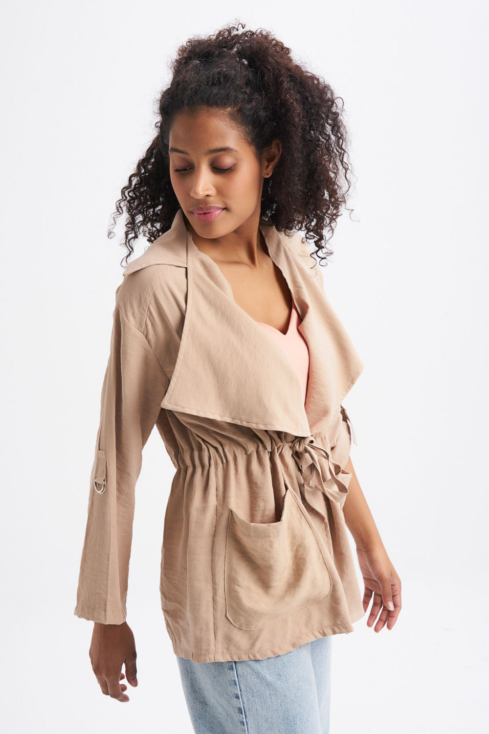 Kemer Detaylı Düğmeli Mevsimlik Ceket Kemik