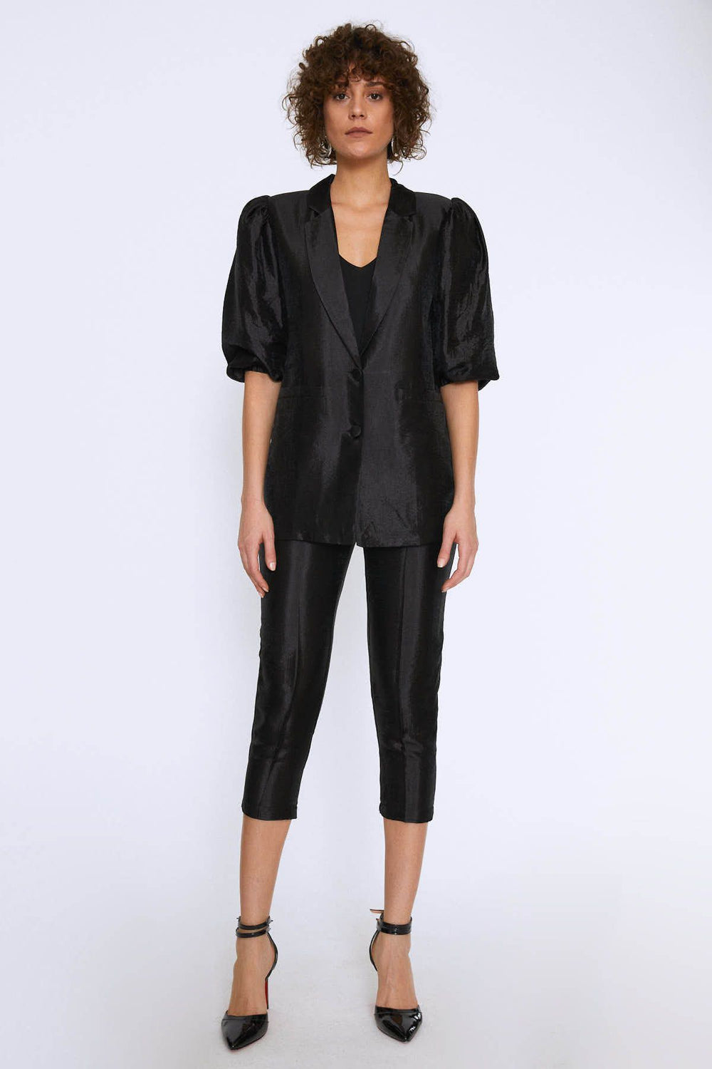 Çiçek Desenli Uzun Şal Yaka Ceket Siyah