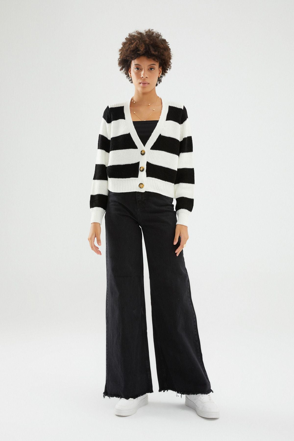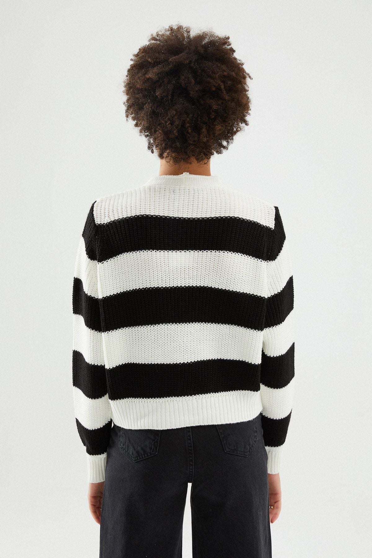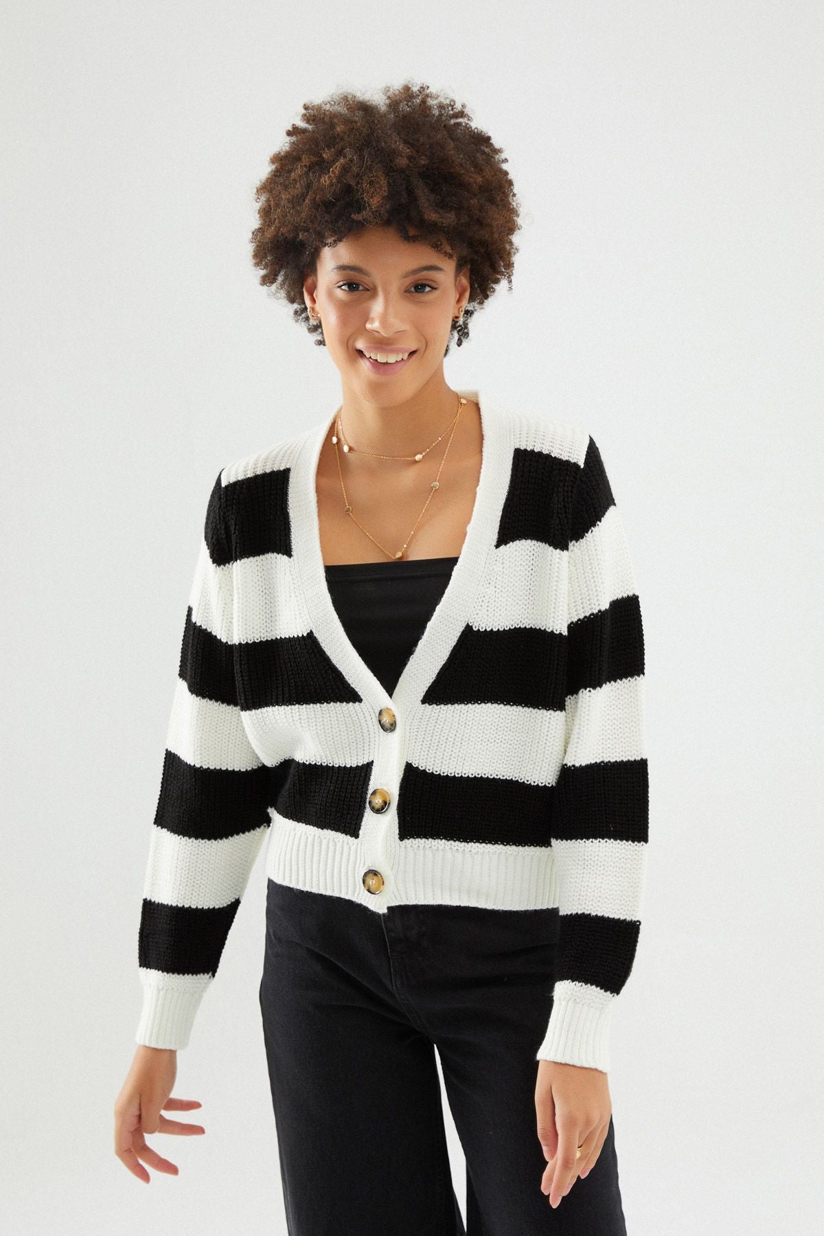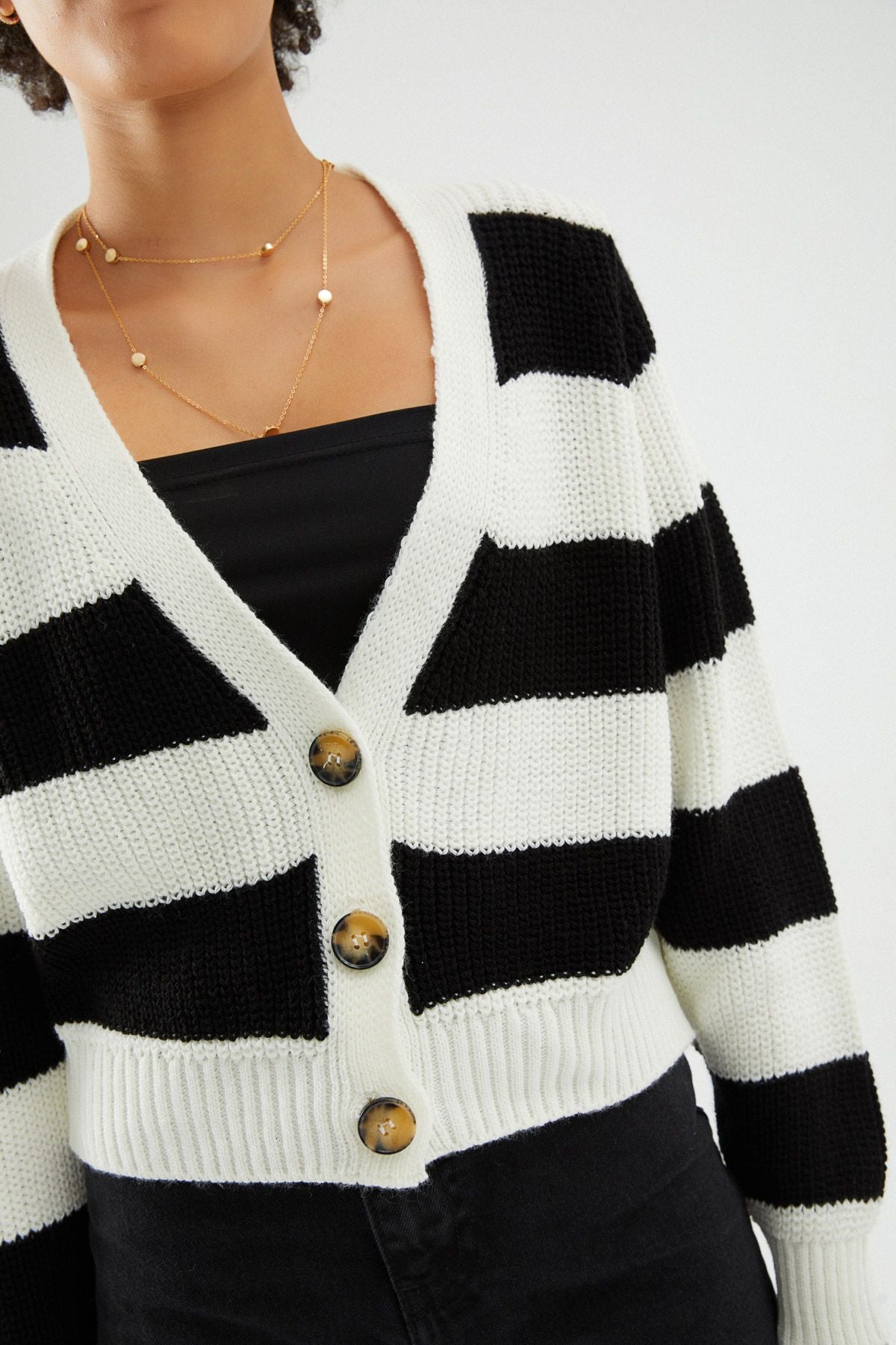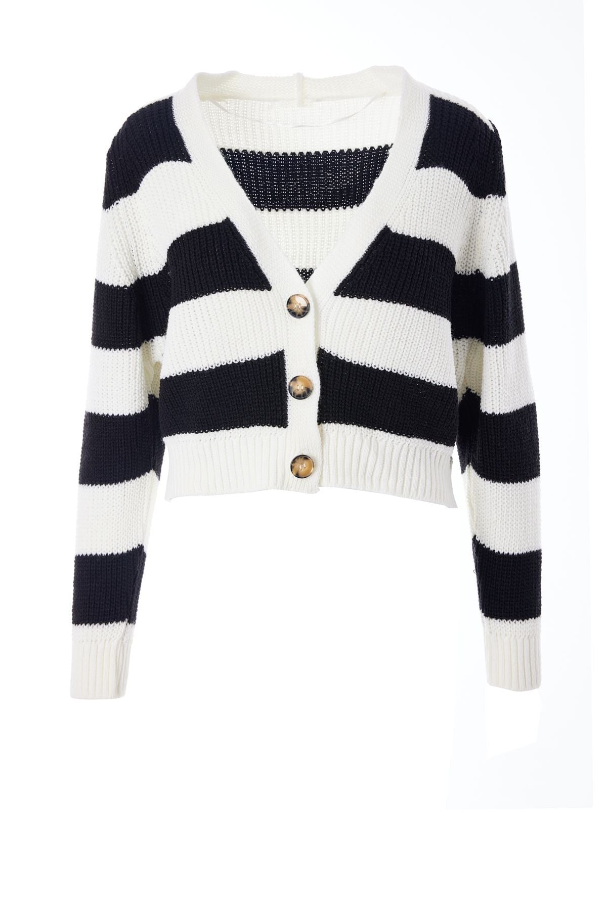 Çizgili Düğmeli Hırka Siyah