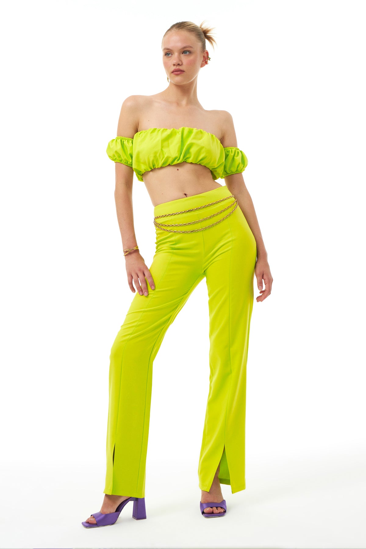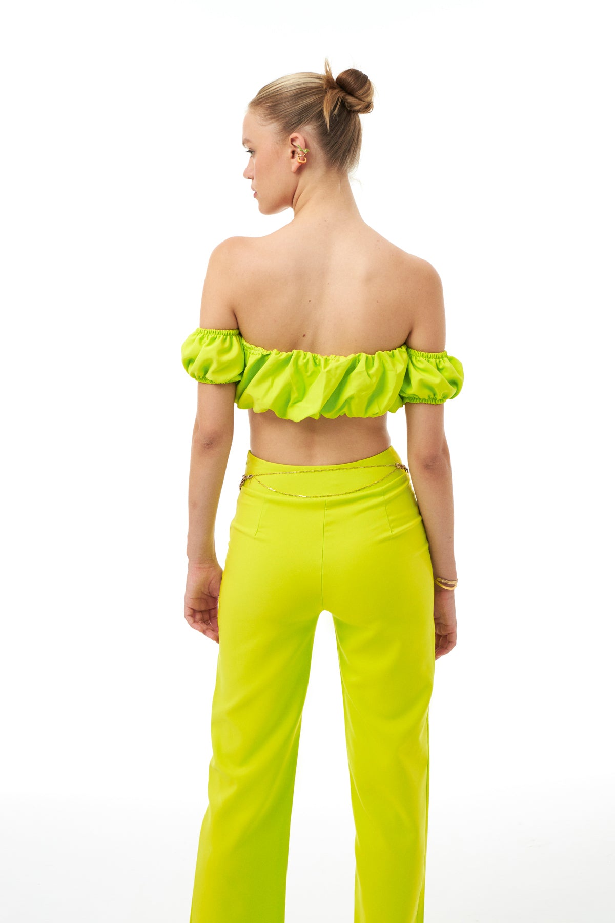 Büzgülü Büstiyer Neon Yeşil