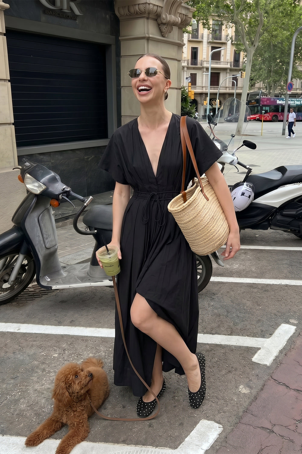 Çapraz İp Askılı V Yaka Uzun Elbise Siyah