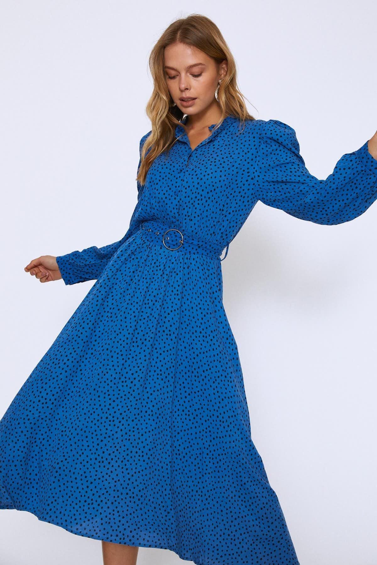 Puantiyeli Hakim Yaka Elbise Sax