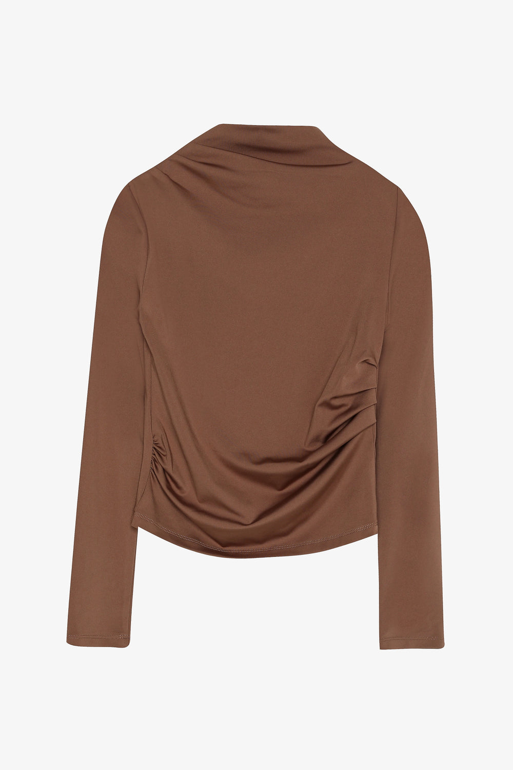 Drapeli Yüksek Yaka Uzun Kollu Basic Bluz Kahverengi