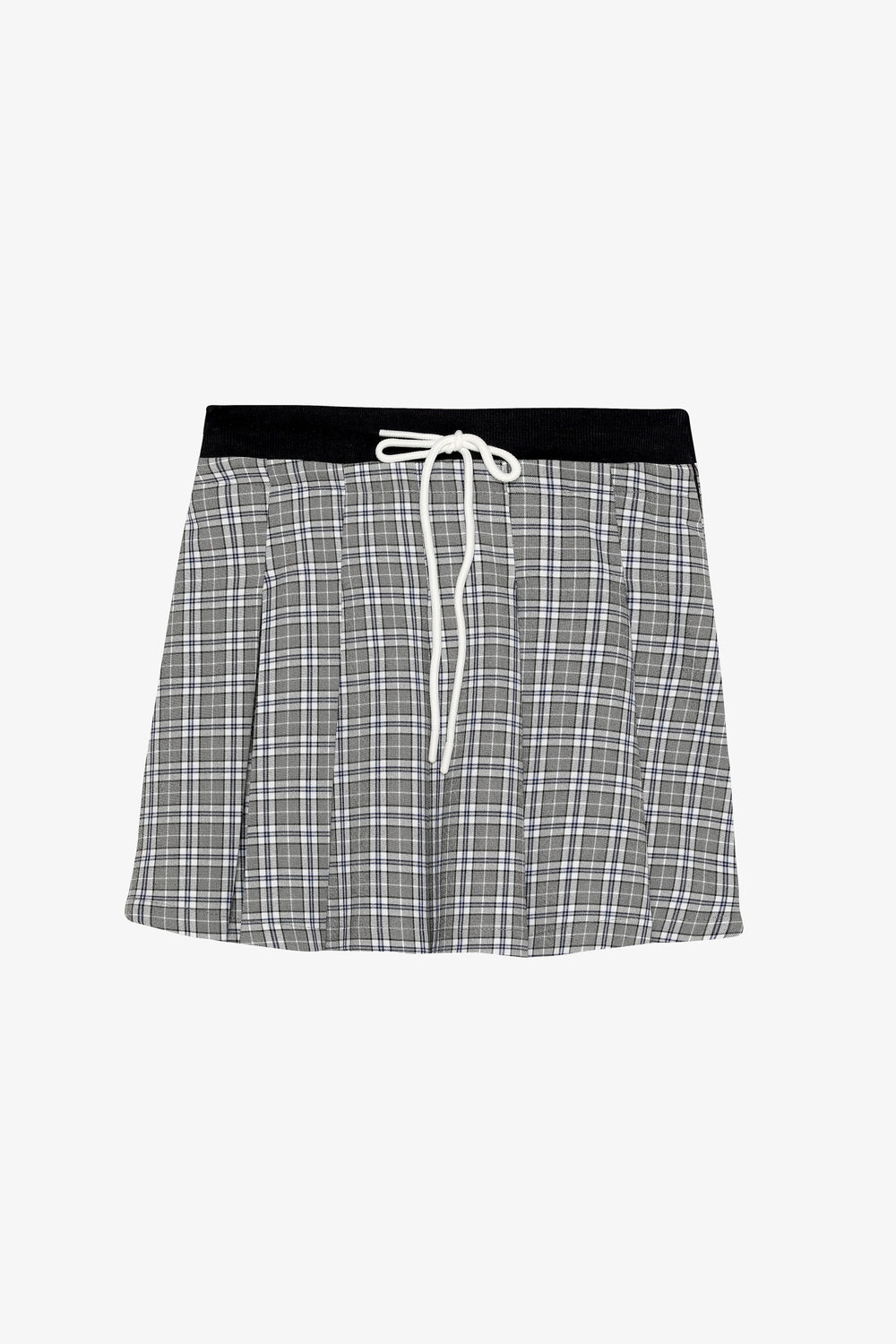Ekose Desenli Beli Bağcıklı Pileli Mini Etek Gri