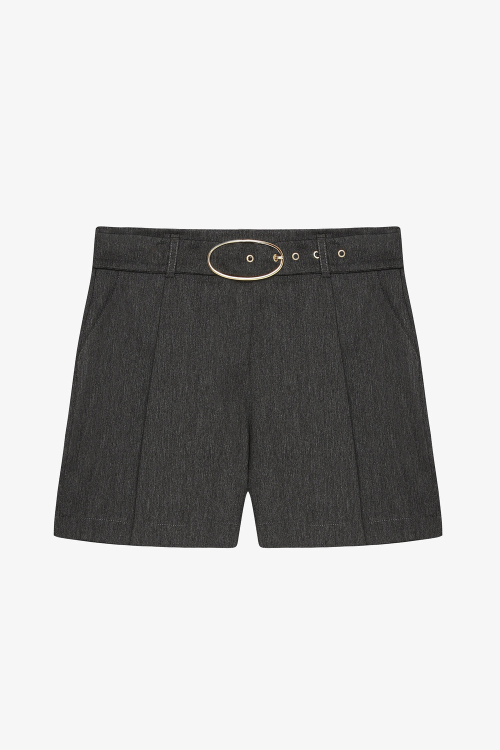 Tokalı Kemerli Pileli Mini Şort Antrasit