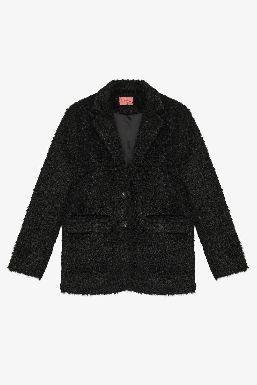 Tüylü Dokulu Oversize Blazer Ceket Siyah
