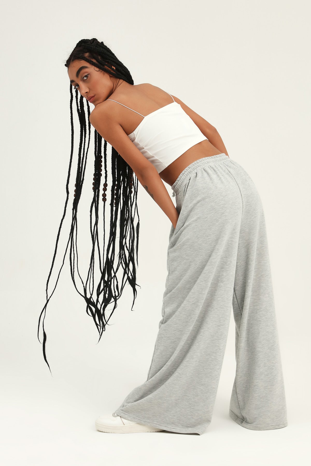 Beli Lastikli Bol Paça Eşofman Açık Gri