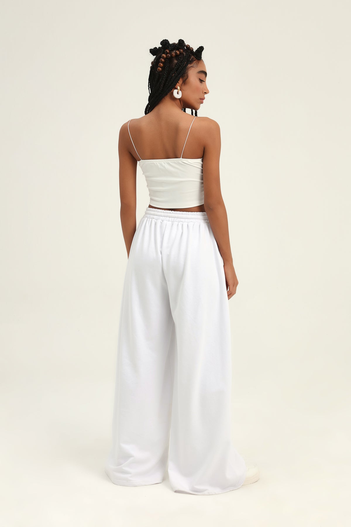Beli Lastikli Bol Paça Eşofman Beyaz