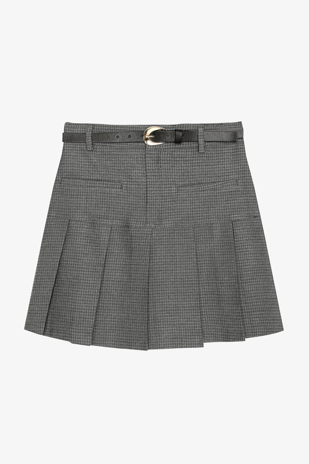 Kazayağı Desenli Kemerli Mini Etek Gri