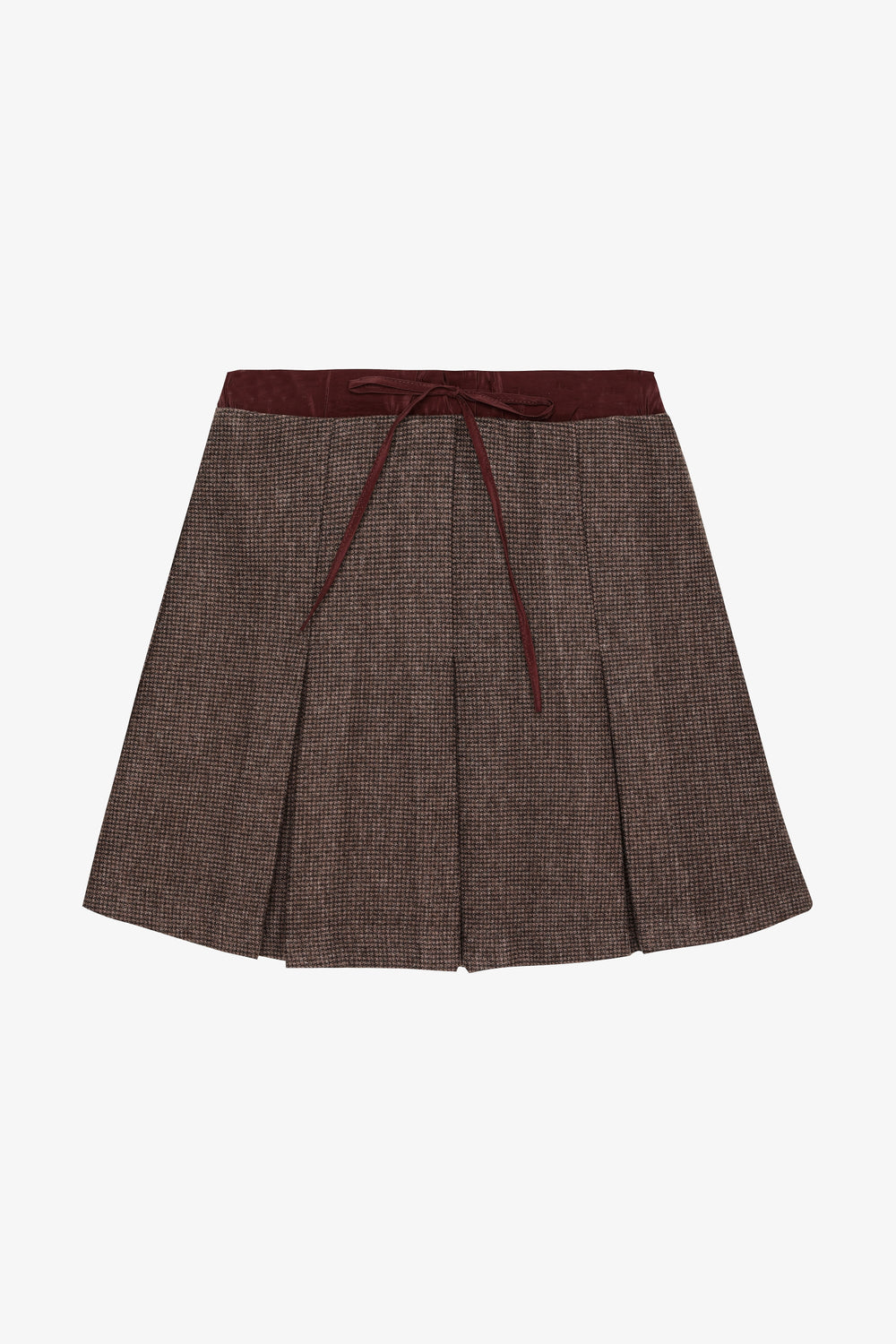 Beli Bağcıklı Pileli Mini Etek Kahverengi
